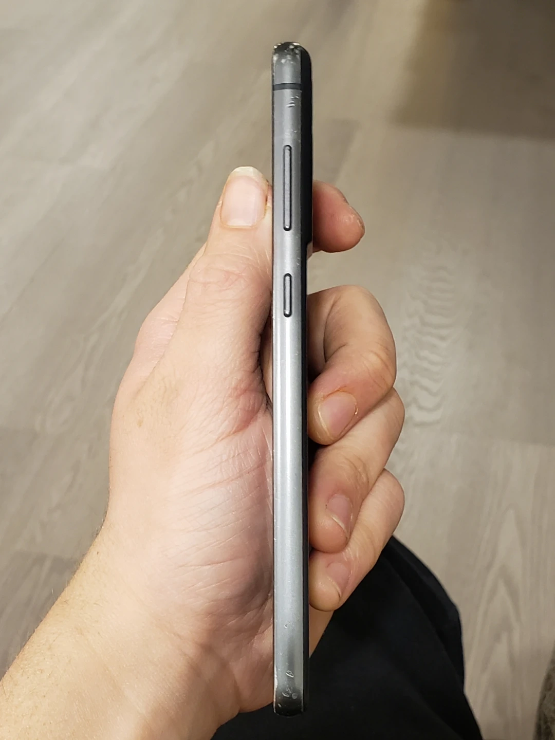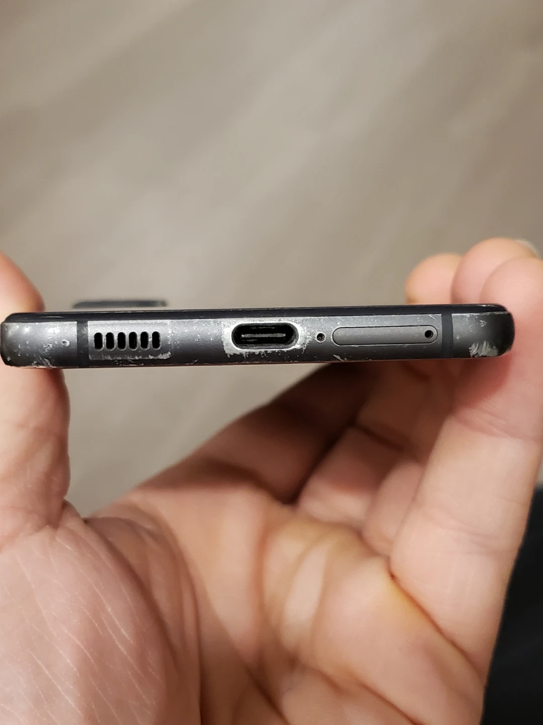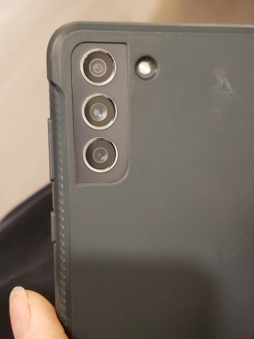 This is a Samsung Galaxy S21 fe smartphone. It has a triple-lens camera system on the back. The screen is cracked but it powers on. As far as I know everything still works fine, a slight glitch when using 'pro video' mode and the speakers aren't the best, but that's an easy fix. Good for a first phone if you want something that works for cheap.
