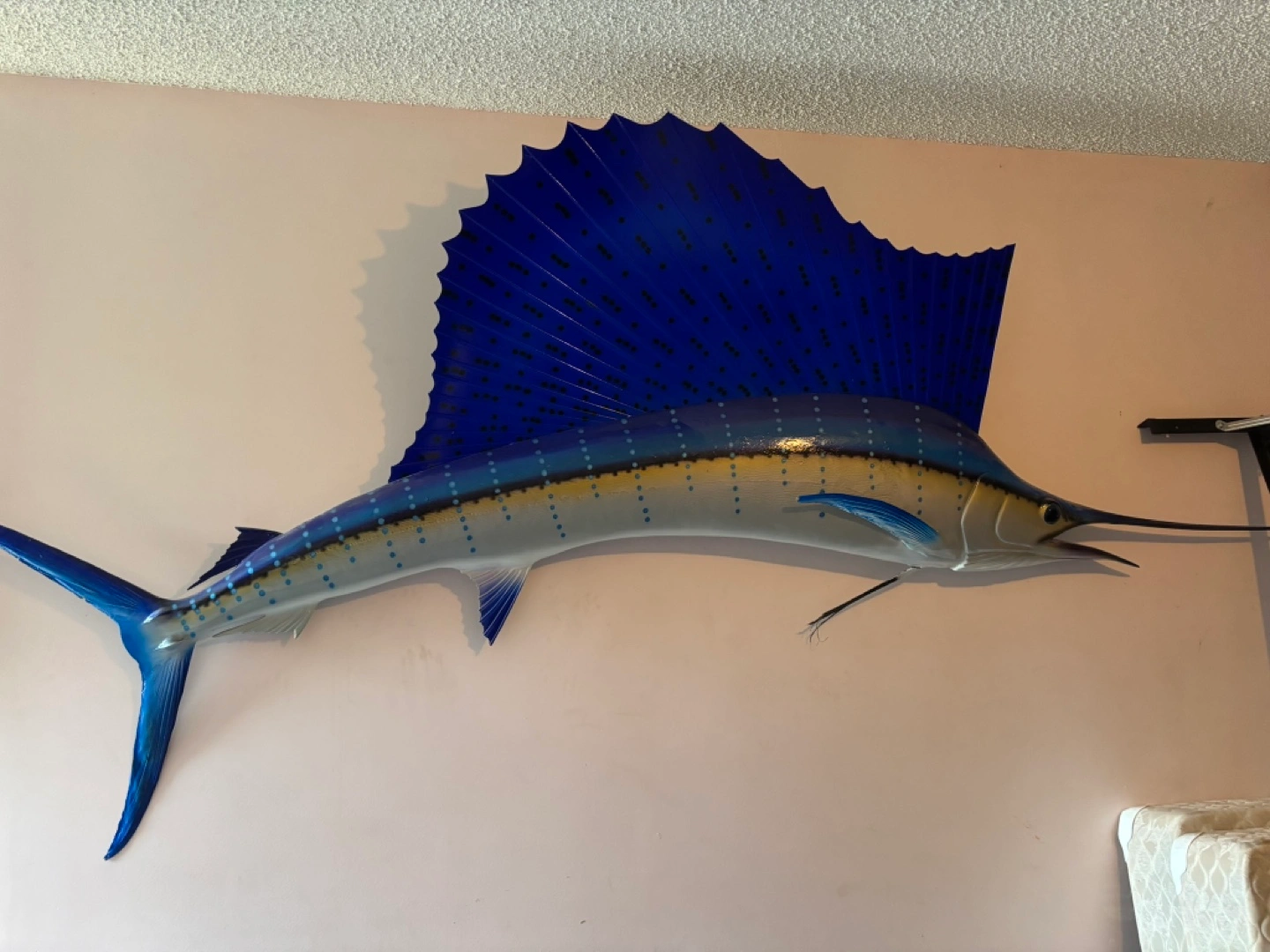 Here's a beautiful fibreglass sailfish wall art piece! It's a great way to add a nautical touch to any room. The colours are vibrant and it's in excellent condition. Perfect for a lake house or ocean themed room! Caught off the coast of Puerto Vallarta Mexico.