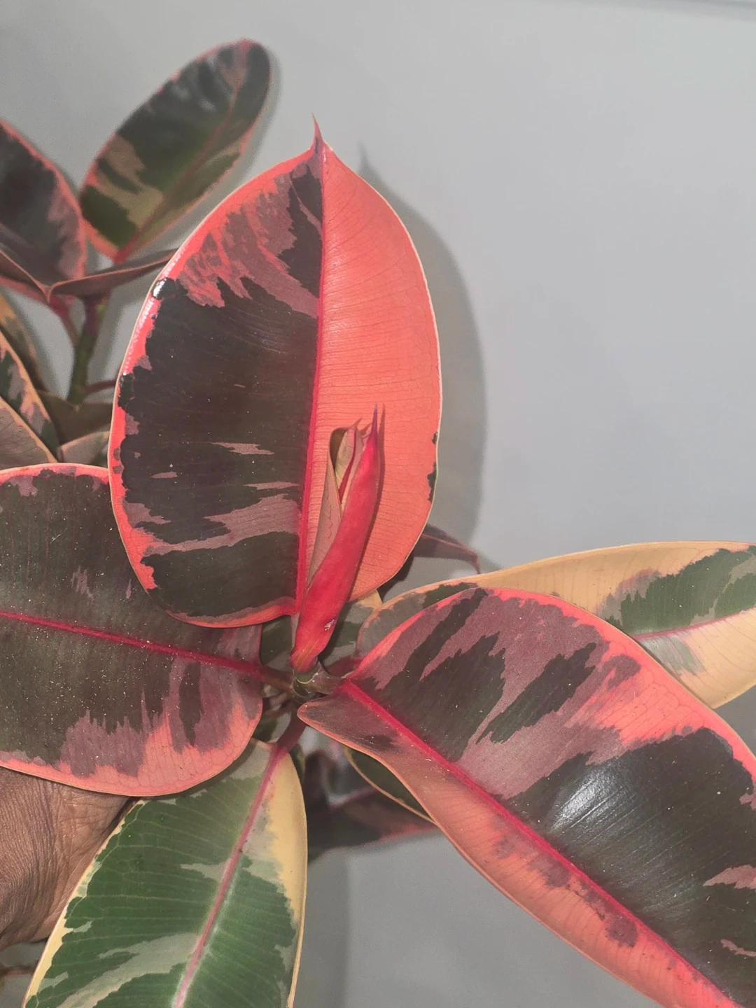 256Beautiful Ficus Elastica Ruby standard tree ready for a new home! It's a great way to add a pop of colour to any room