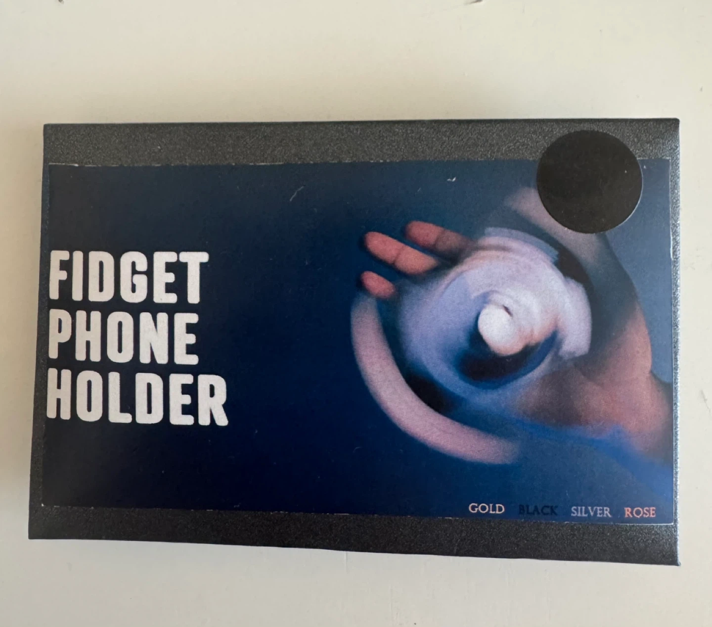 a fidget phone holder in black! It's brand new and comes with its original box. This handy gadget lets you securely hold your phone while keeping your hands busy. Perfect for anyone who likes to fidget!