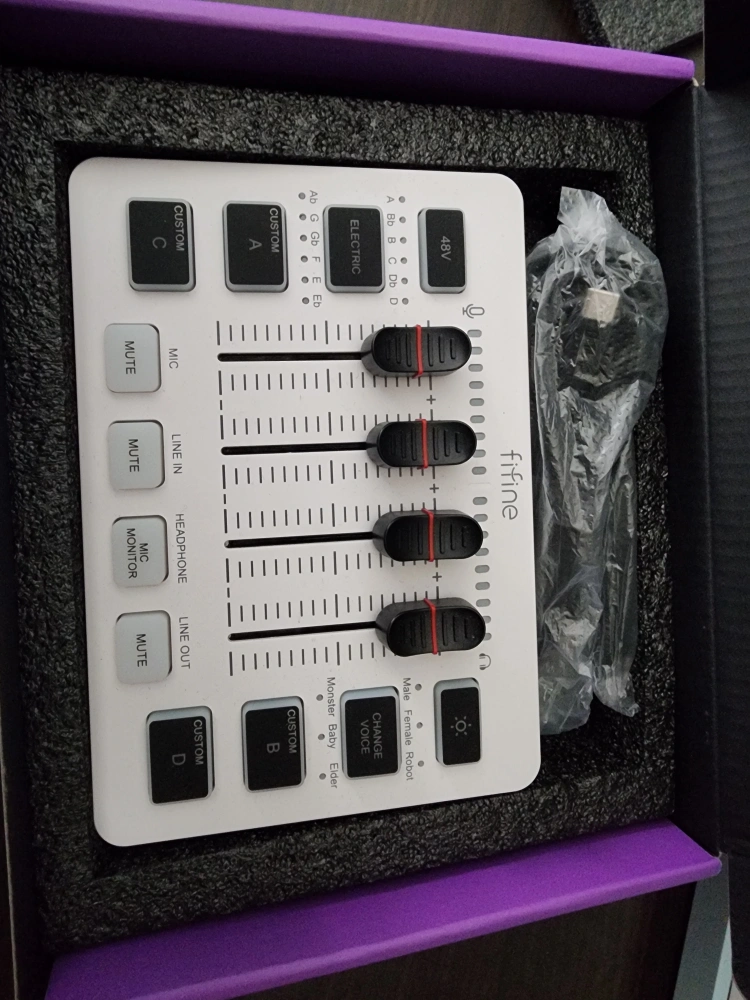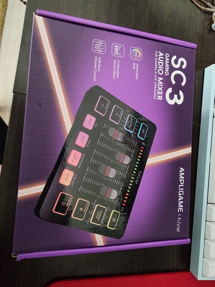 15Selling a Fifine SC3 Ampligame audio mixer, in like-new condition! It comes with the original box and all components. This mixer is great for gaming and live streaming, offering individual channel control and customizable sound effects. It also features switchable RGB lighting. Perfect for anyone looking to upgrade their audio setup!
