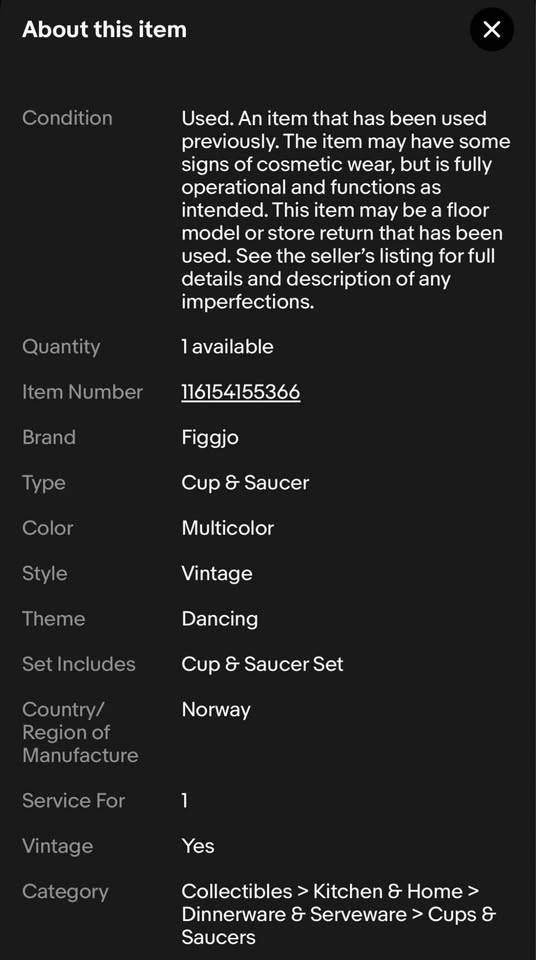 Pick up near Southcentre mall. If this ad is up, it is available. Add a touch of vintage glam to your tea time with this Figgjo Flint Norway Hardanger Dancers Teacup & Saucer Set. The multicolor set features a unique dancing theme, depicting a traditional Norwegian folk dance called Hardanger. Made in Norway, this cup and saucer set is perfect for collectors and those who appreciate rare finds. The set includes one cup and one saucer, designed with a vintage style that adds a timeless charm to your kitchen. Whether you're enjoying a cup of tea alone or entertaining guests, this set is sure to impress.