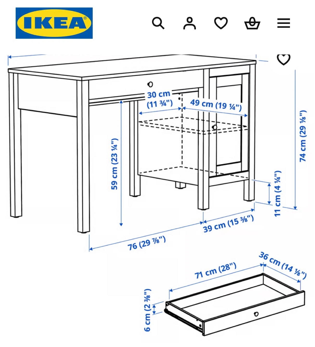 Stylish and sturdy HEMNES office/study desk in a black-brown finish. Perfect for studying, reading, drawing, or hobbies, and great for small spaces.