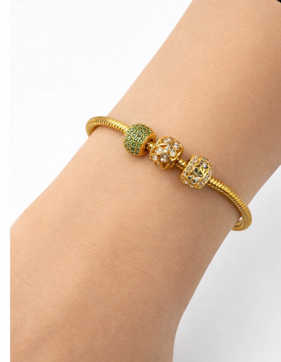 β¨ Gold Charm Bracelet with Emerald & Crystal Details β¨