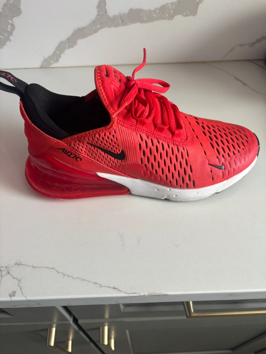 Nike Air Max 270 sneakers in red. US Youth size 6Y. These shoes offer a comfortable and stylish option for everyday wear. Excellent for active kids or teens! These sneakers were worn 1x.