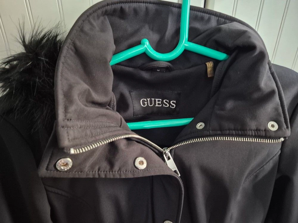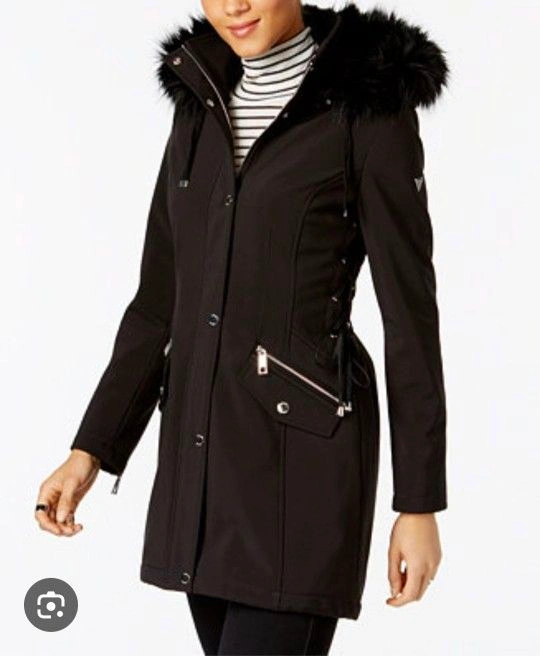 Guess Faux-Fur-Trim Lace-Up Coat/Parka Size M