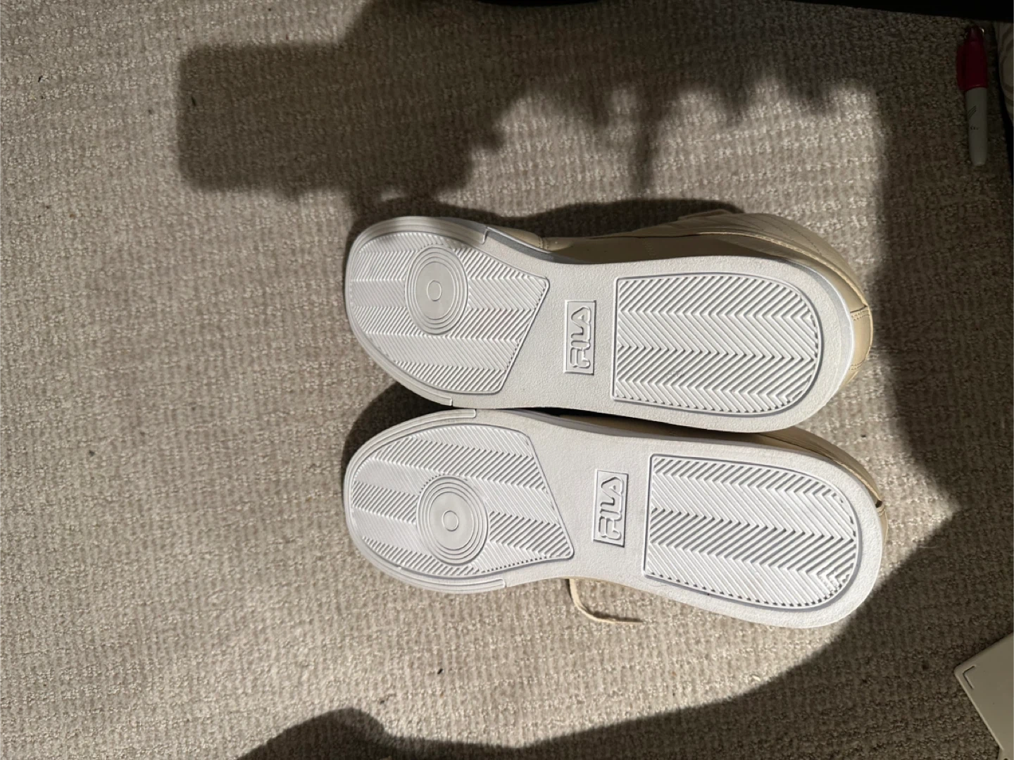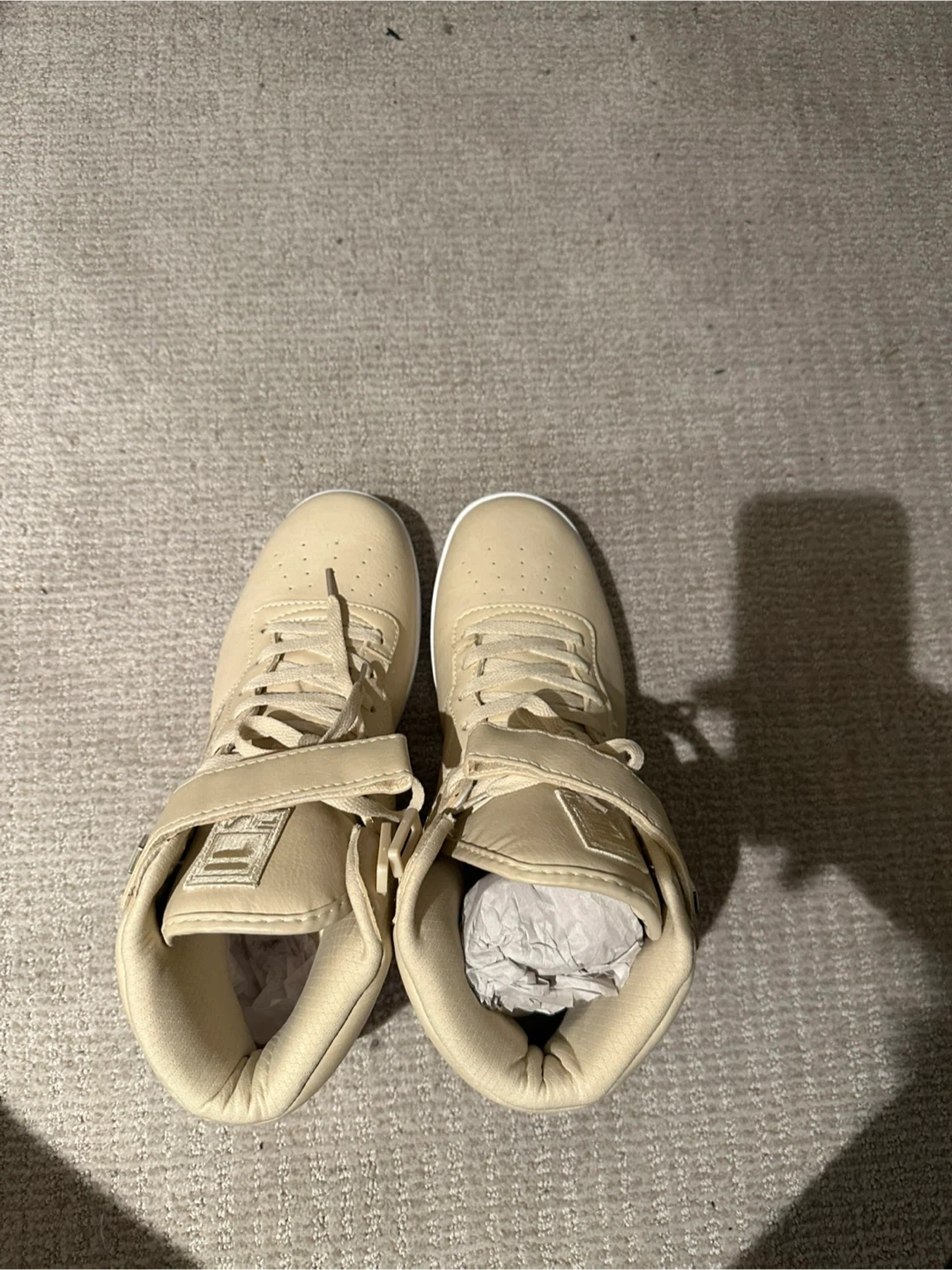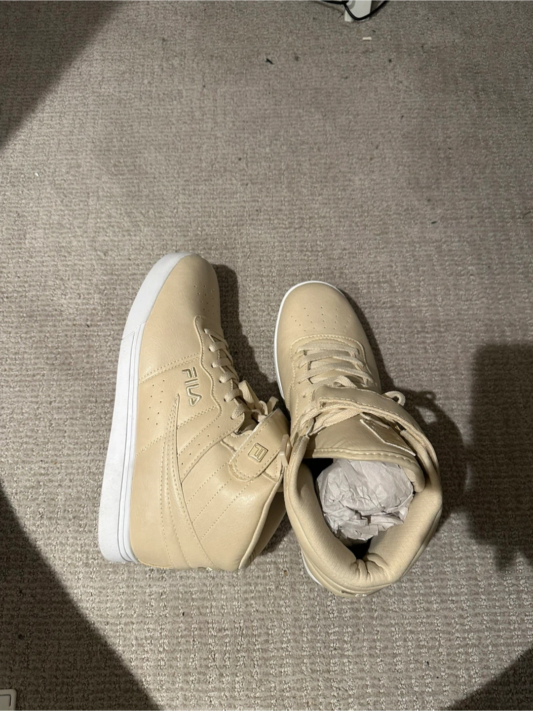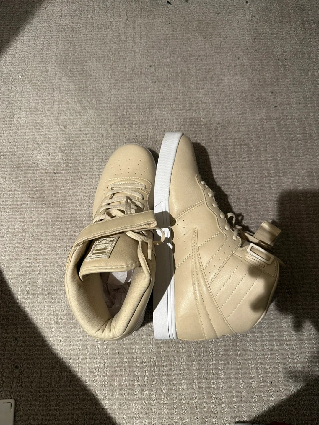 18Selling a pair of Fila high-top sneakers in a lovely cream colour. They're in great condition and ready for a new home! Size 11 men