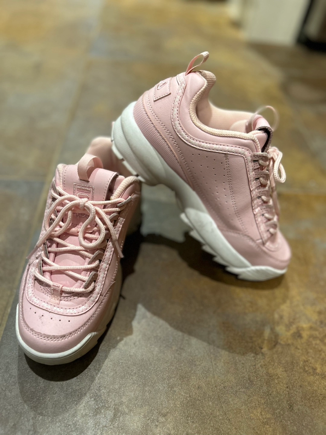 70Selling a pair of Fila Disruptor sneakers in pink! They're in great condition and ready for a new home. Perfect for adding a pop of colour to your outfit! Women size 7