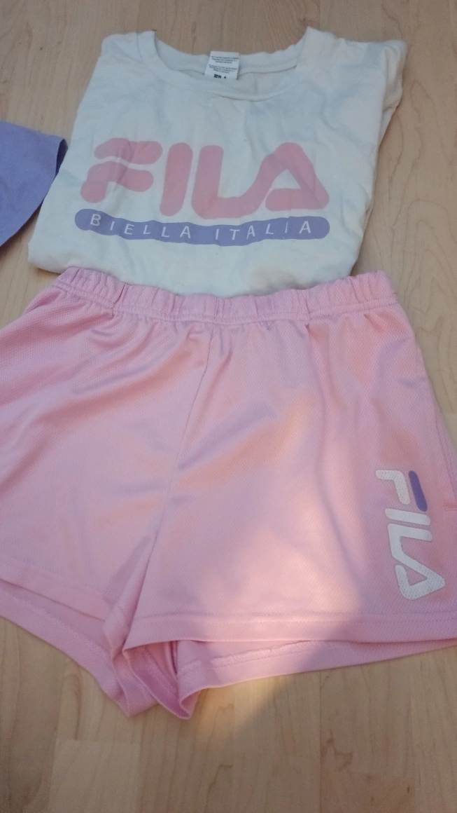 67Selling a cute Fila clothing set for kids! Includes shorts and a t-shirt, perfect for active little ones. The set is size L (10/12).