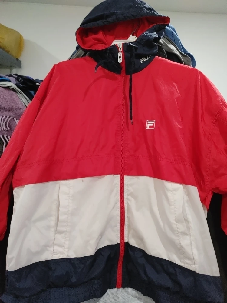 1000+🧡FILA LIGHTWEIGHT JACKET 🧡MENS TAG SIZE IS MED BUT ALSO FITS LARGE. 🧡SMALL DIRT MARK IN LAST PHOTO. 🧡I AM LOCATED IN THE YONGE AND STEELES AREA FOR PICKUP.