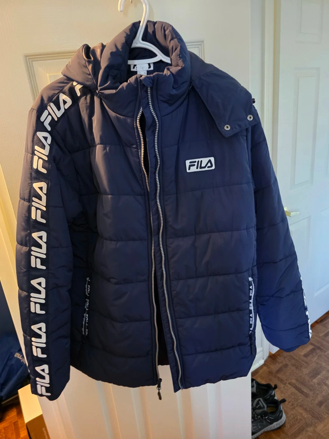 65Selling a Fila puffer jacket in blue. It's in great condition and perfect for the colder weather!
