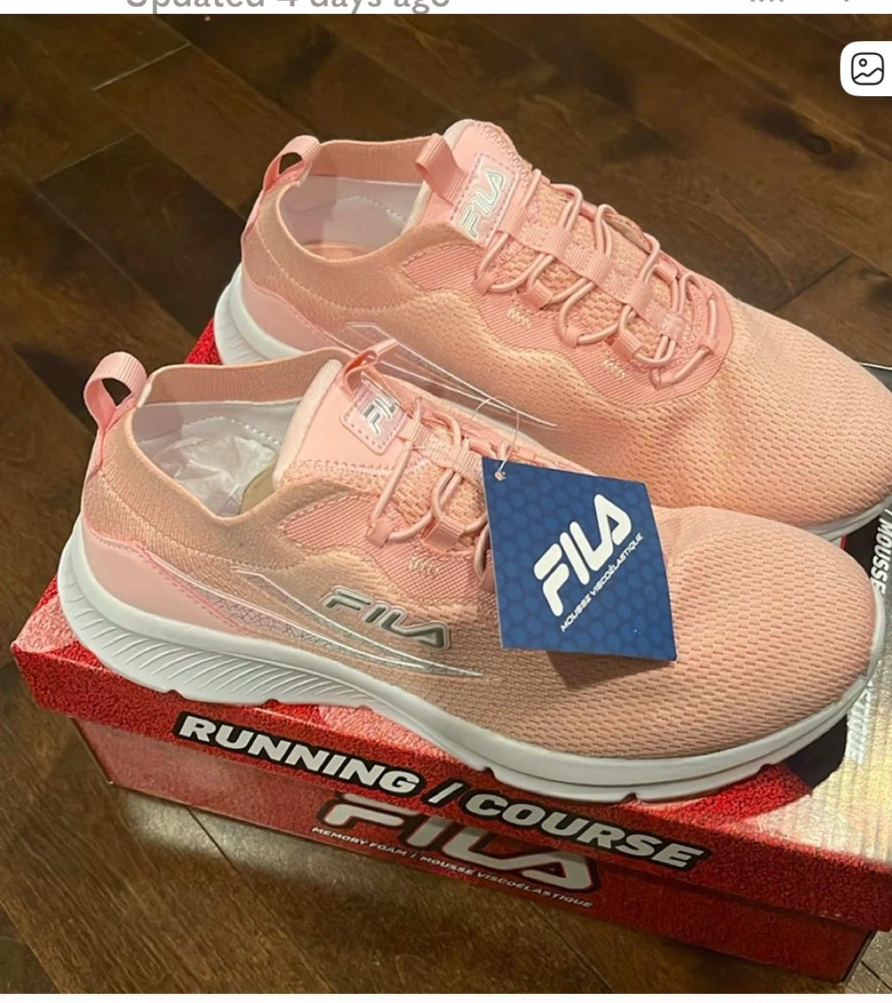 Brand new women’s FILA Running/Course shoes in a lovely peach colour! These have memory foam insoles for extra comfort while running or walking. They come in the original box!