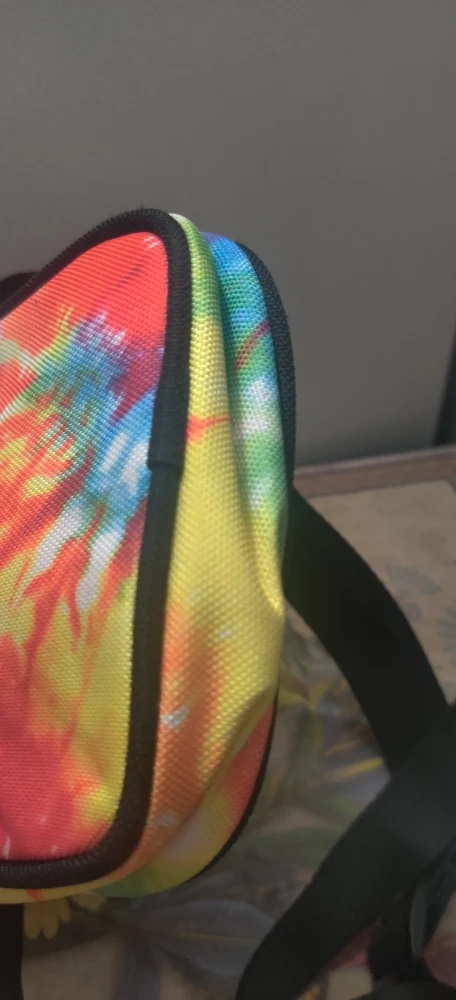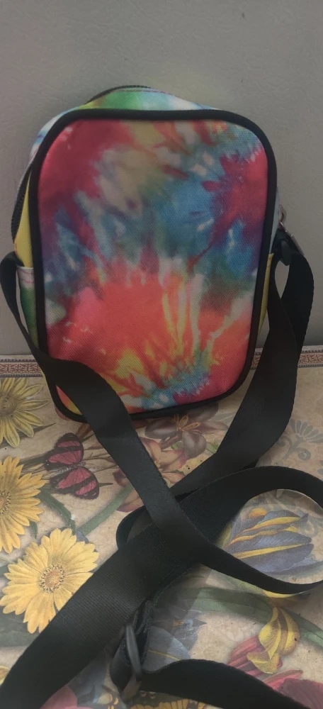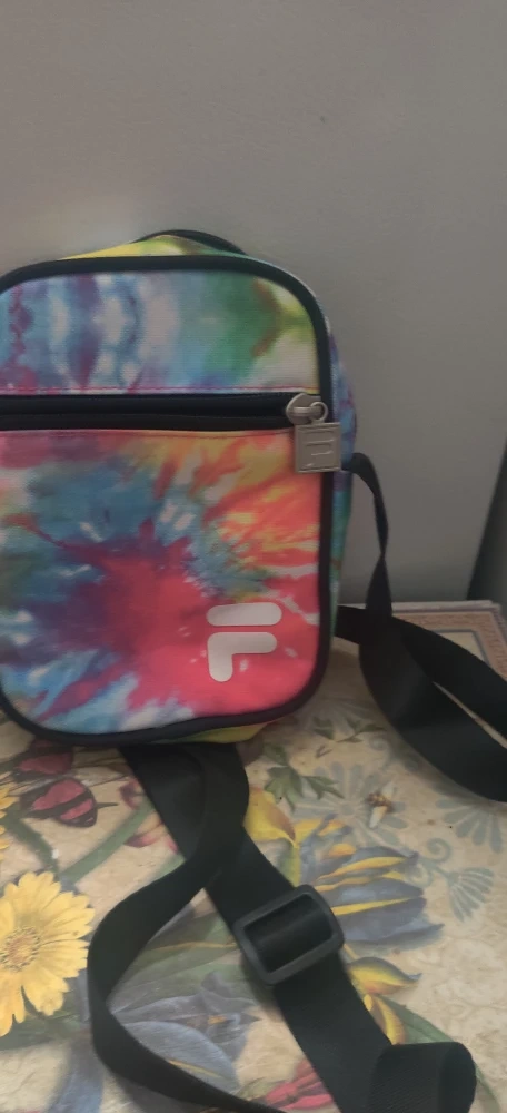 1000+Here's a small colourful Fila crossbody bag! It features a fun tie-dye pattern and a black adjustable strap. Perfect for carrying your essentials in style. Bag is new without tags