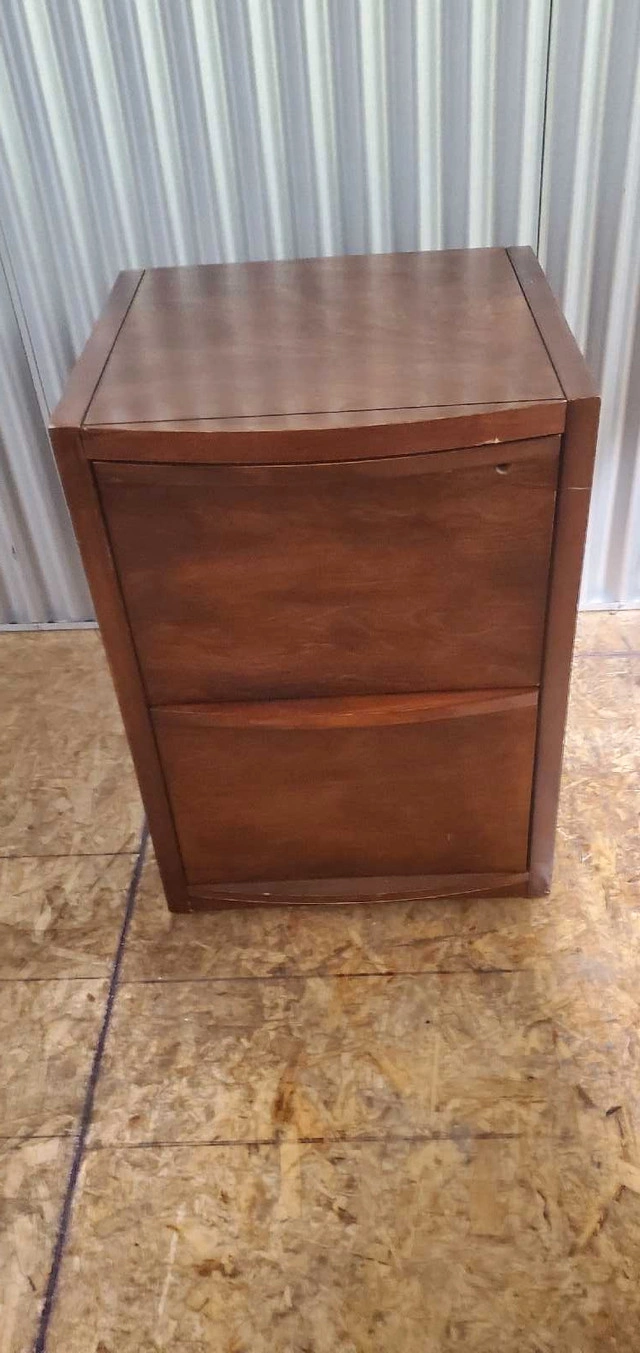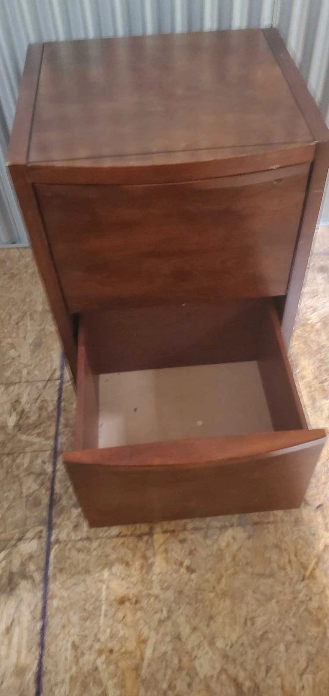 10Organize your documents with this used, two-drawer file cabinet featuring a classic wood finish. Perfect for home or office use, it offers ample storage and a traditional look. * Two drawers for filing * Wood finish * Traditional design Looking to add a touch of elegance to your workspace or home office? This file cabinet not only provides functional storage but also adds a touch of sophistication. If the ad is up, it's available!