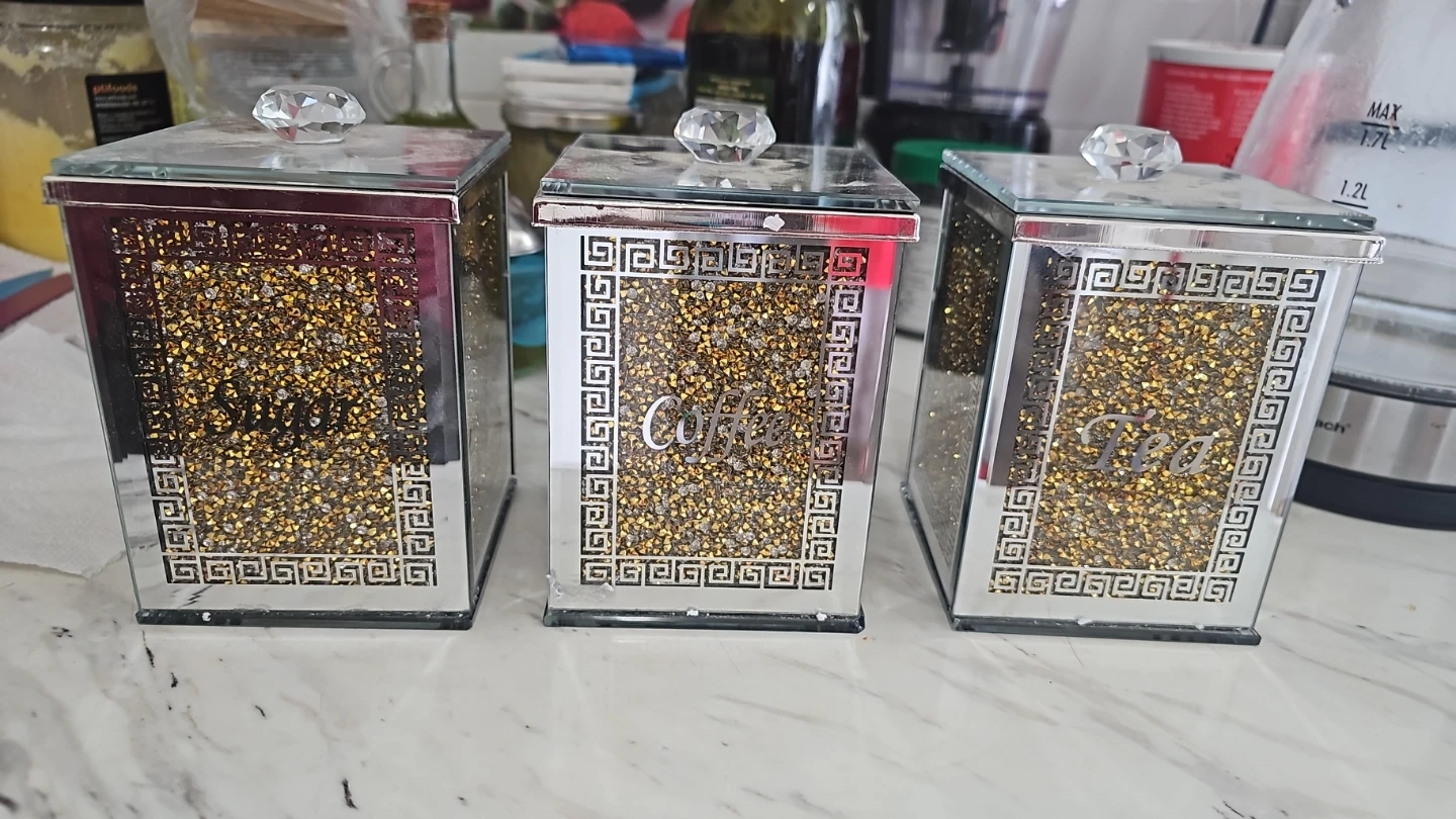 Sparkly Mirrored Canister Set - Sugar, Coffee, Tea