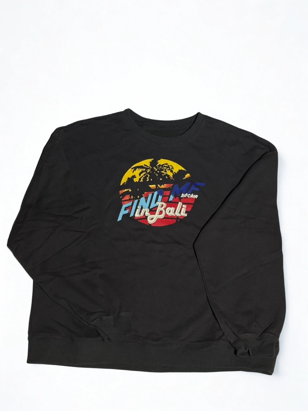 15Cozy black sweatshirt with a fun "Find Me B**** in Bali" design! Size S.