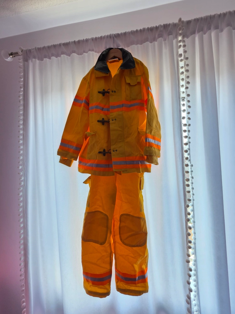 Selling a firefighter costume. Great for dress-up or Halloween! The costume includes both the jacket and pants.