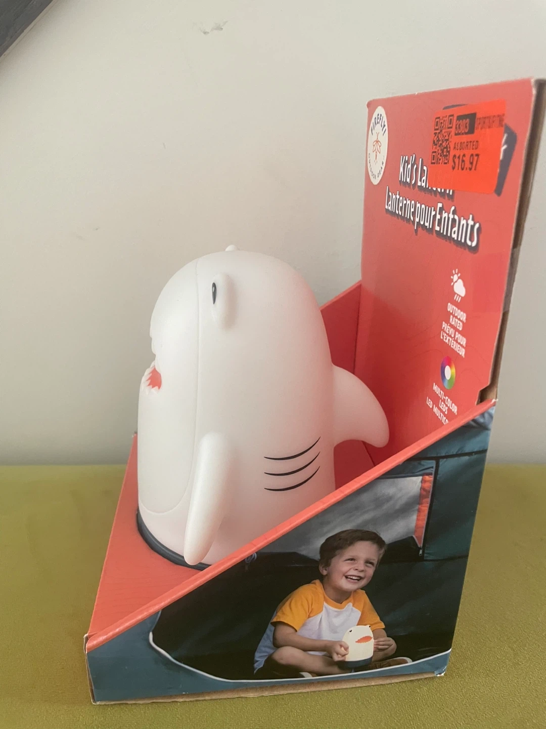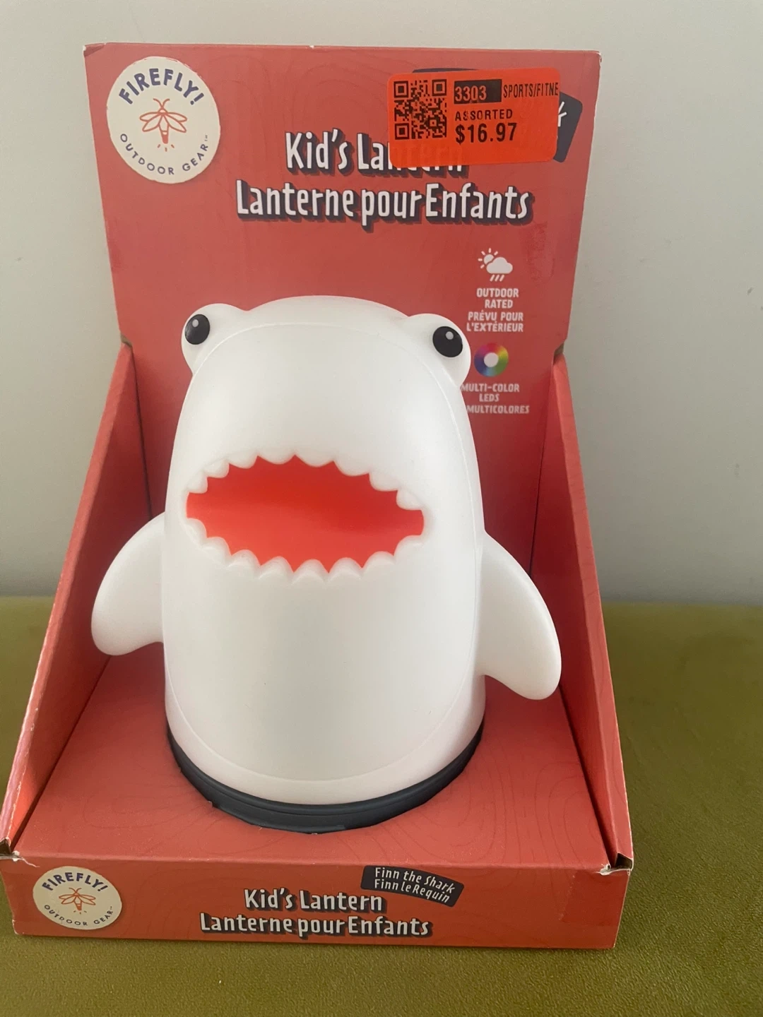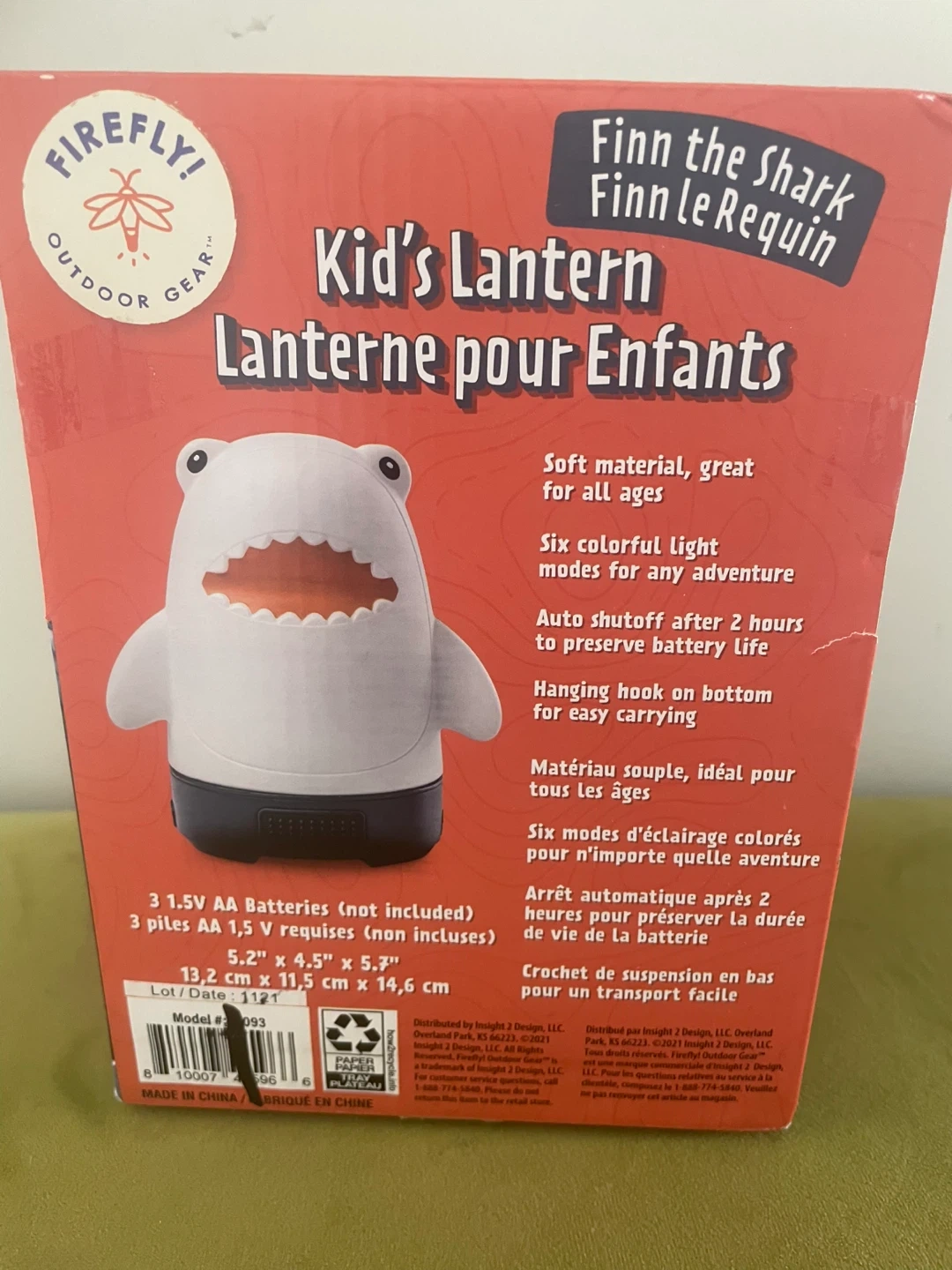This adorable Firefly! Outdoor Gear Kid's Lantern is shaped like a shark! It features six colourful light modes for any adventure. It's made of a soft material and is great for all ages. It also has an auto shutoff after 2 hours to preserve battery life. The dimensions are 5.2" x 4.5" x 5.7"