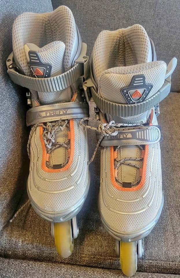 Selling a pair of Firefly S155 Lady inline skates, size EUR 40 (US Women’s 8.5–9). These semi-soft recreational rollerblades are perfect for fitness skating, cruising or just enjoying the outdoors. ✔️ Key Features: ABEC 5 bearings (smooth mid-level ride for casual and fitness use) 8mm axles (standard, easy to replace or upgrade) Anti-Vibration Technology for comfort and reduced foot fatigue Semi-soft boot design for a secure yet comfortable fit Max Fit padding for ankle support Durable wheels marked Firefly – still in good condition ✔️ Condition: Normal signs of wear. All straps, buckles, and padding in solid working order. Wheels and bearings still roll smoothly. ✔️ Sizing: EUR 40 Approx. US Women’s 8.5–9