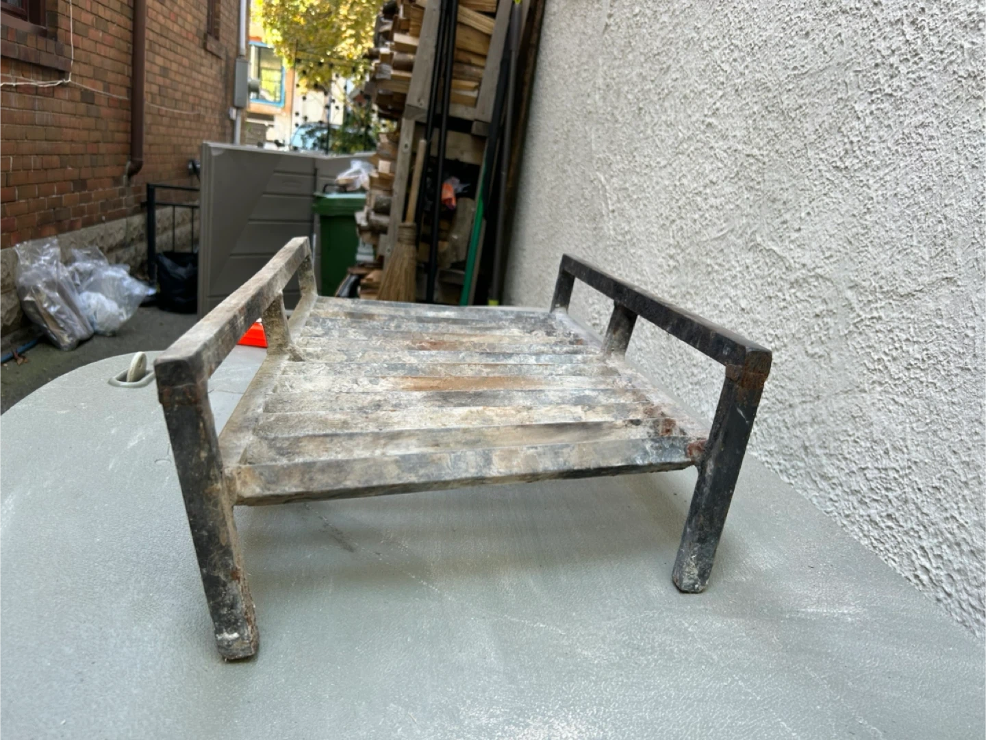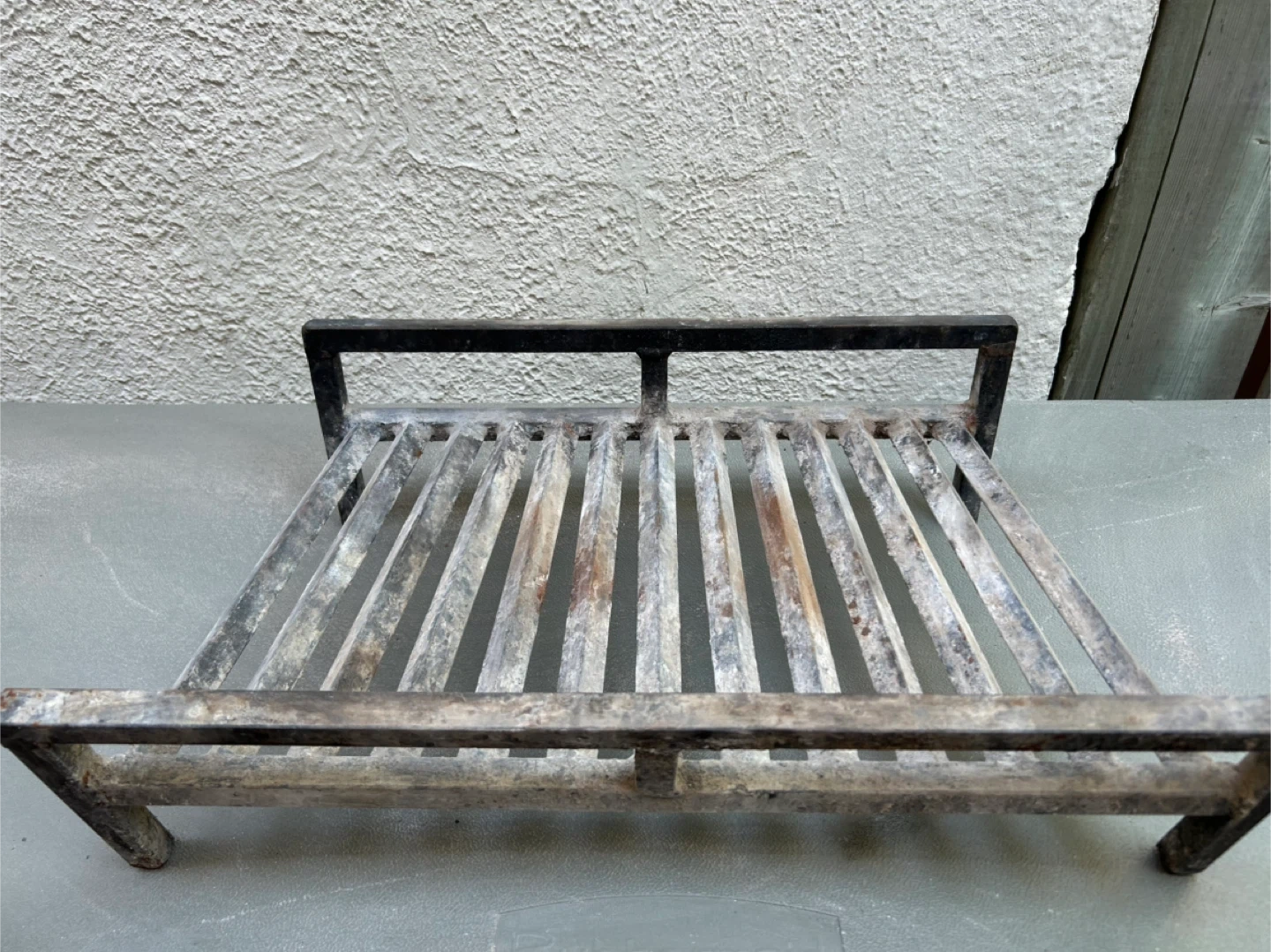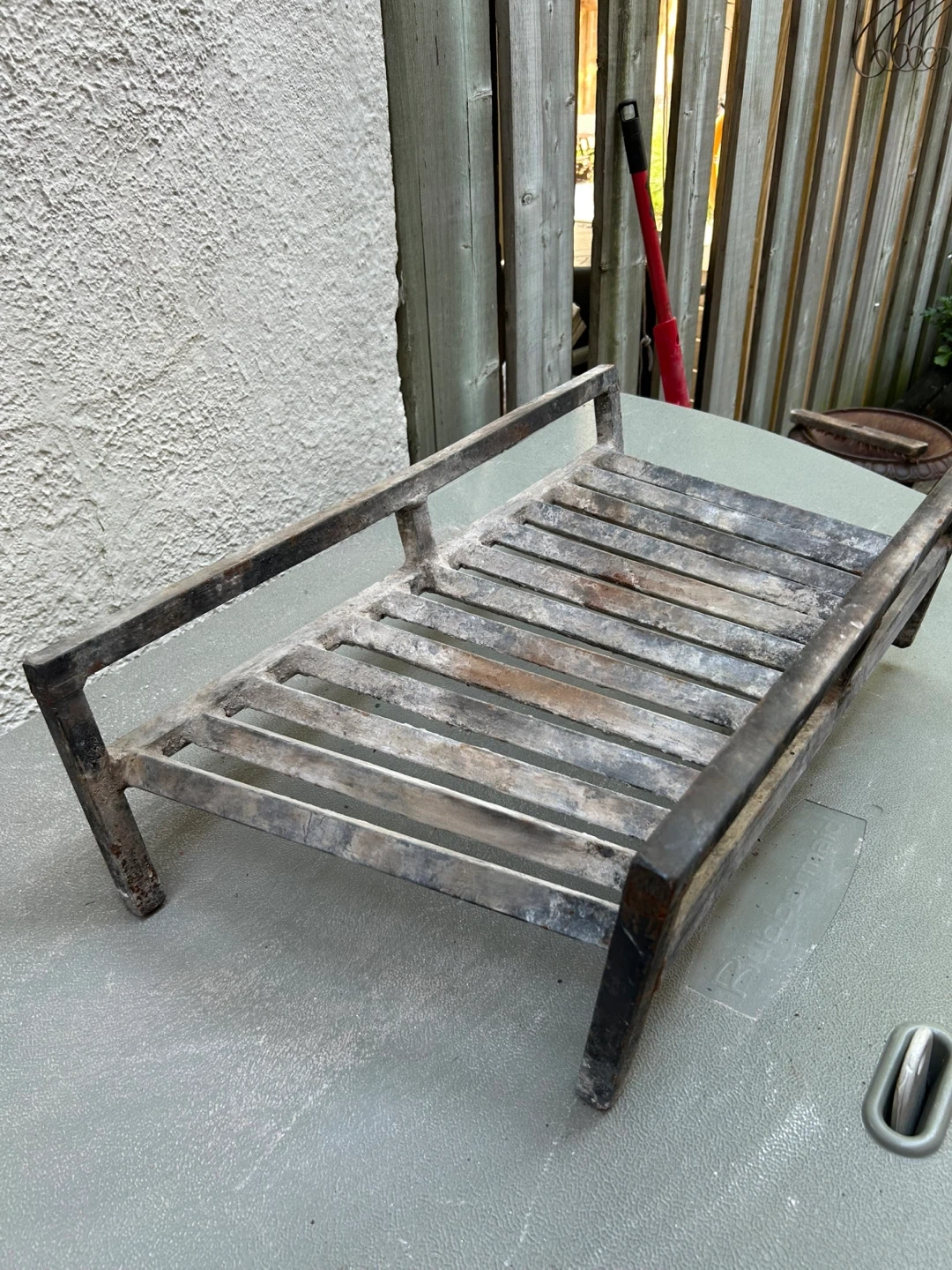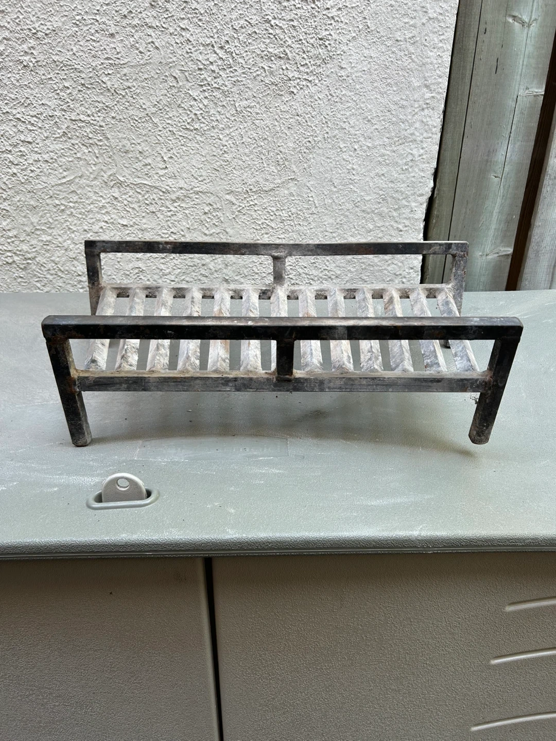 Wrought iron metal steel LARGE fireplace fire place grate 24 x 14 x 6 inch Donlands O'Connor E York LARGE CAST IRON FIRE GRATE Fireplace holder for wood and logs This is trapezoid shape Ie wider one end than the other 24 inches widest one side 20 inches wide the other side 14 inches deep And 6.5 inches high Used but great condition No breaks No cracks no deep rust affecting integrity Sleek design Easy to fit into traditional or modern homes and fireplaces in the city or at your cottage 120.00 Flexible re pickup time & day Elmsdale Road M4J 3M3 Donlands O'Connor East York Don Mills south exit off DVP