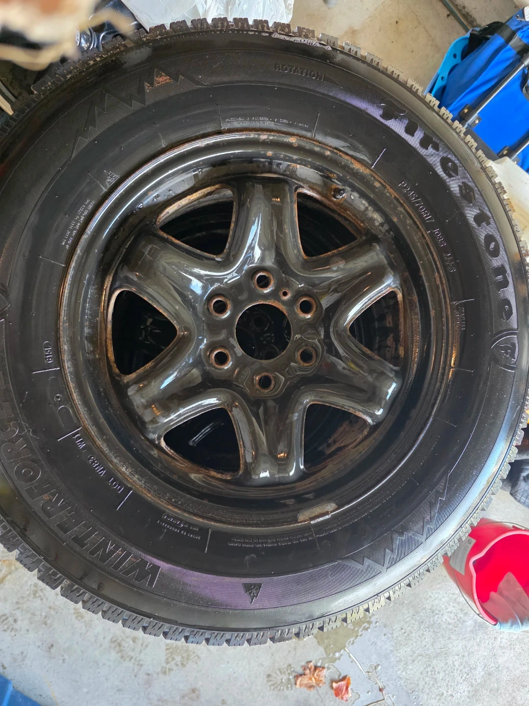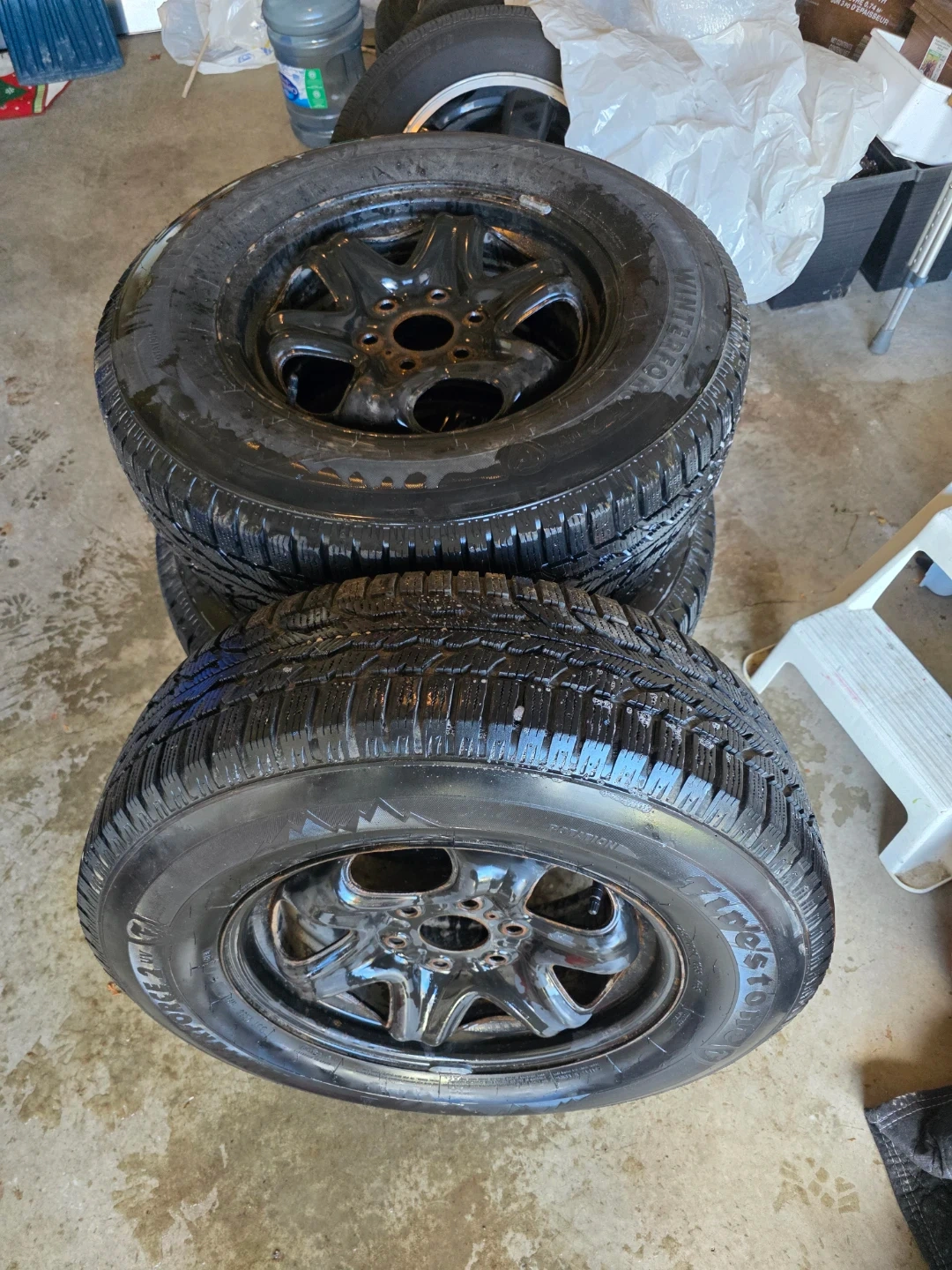 Winter Tires on Rims – P245/70R17 (1 Season) — $550 OBO Firestone winter tires on 17" steel rims Came off Chevrolet Traverse Bolt pattern: 6×120 mm Used one season, excellent tread. No plugs, no damage. Indoor stored. Ready to bolt on. Price: $550 or best offer Location: Oshawa, ON Pick-up only.