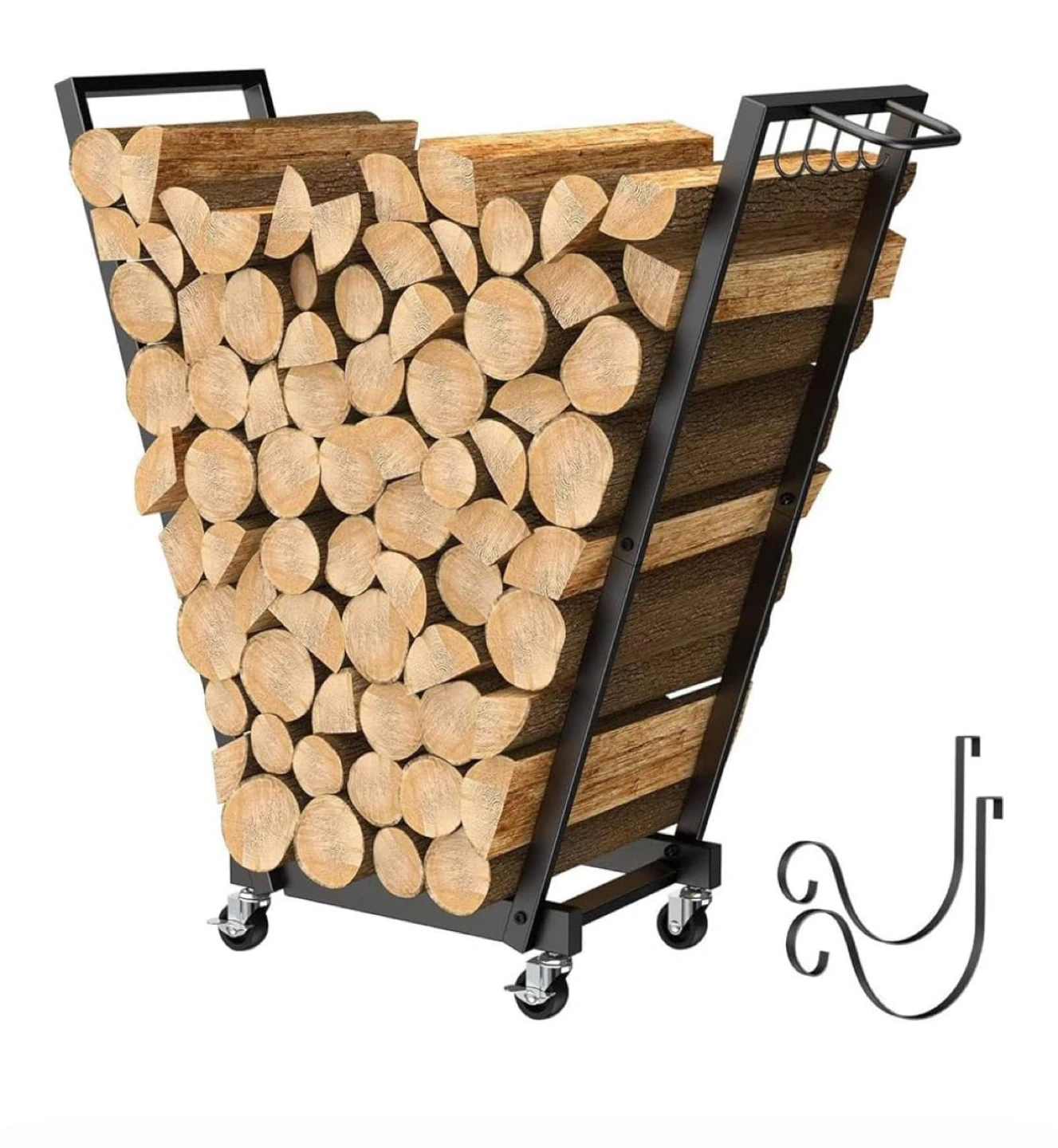 Get ready for cozy nights with this handy rolling firewood log cart! It comes with a removable kindling holder, making it super easy to keep your firewood organized and ready to go. Perfect for indoor or outdoor use!