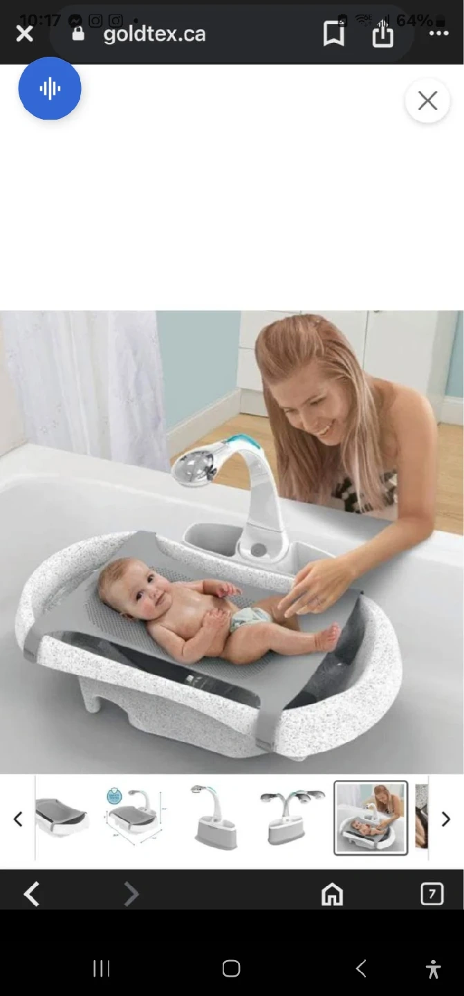 70This First Years Newborn to Toddler Tub is perfect for your little one! It features a soothing waterfall to keep your baby calm and happy during bath time. The tub is designed to grow with your child, from newborn to toddler, making it a versatile and practical choice for your family Issue: Has small chip on the bottom side of the shower stand but won't affect the purpose