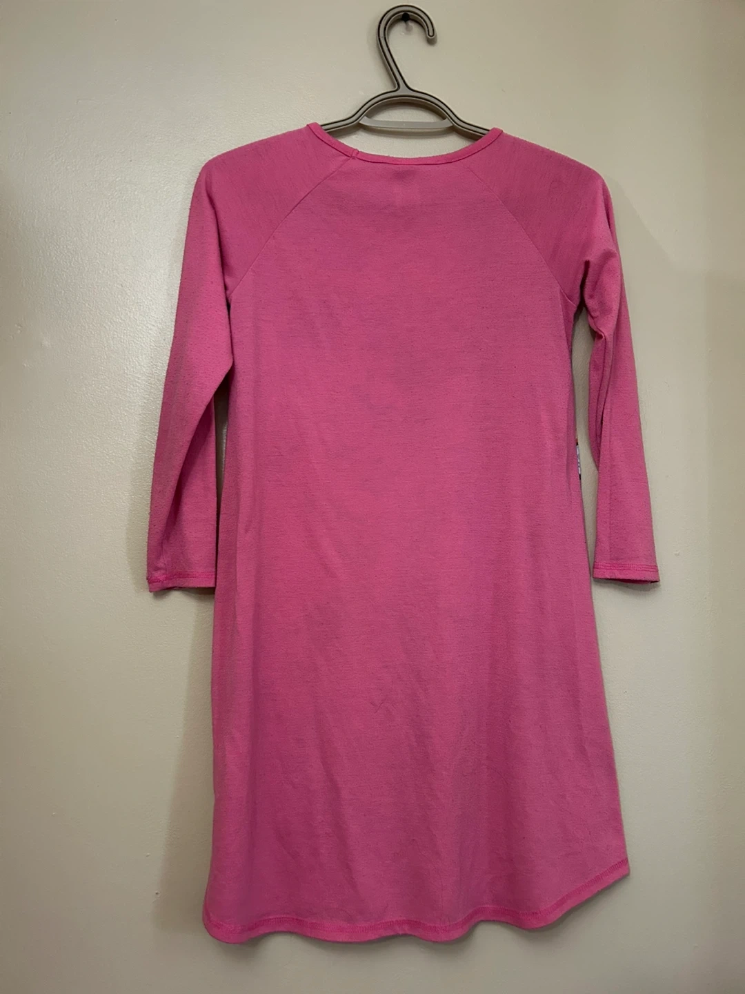 This is a used long sleeve nightie for girls, perfect for adding a pop of colour to any young wardrobe. The nightie features a colourful hearts pattern and long sleeves. It's in good condition, ready for a new home.
