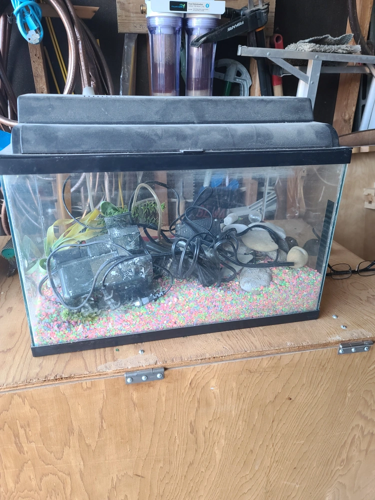0Selling a used fish tank that comes with some accessories. It includes a filter, gravel, pump heater and some decorative rocks and plants. It's a great starter kit for anyone looking to get into fishkeeping!