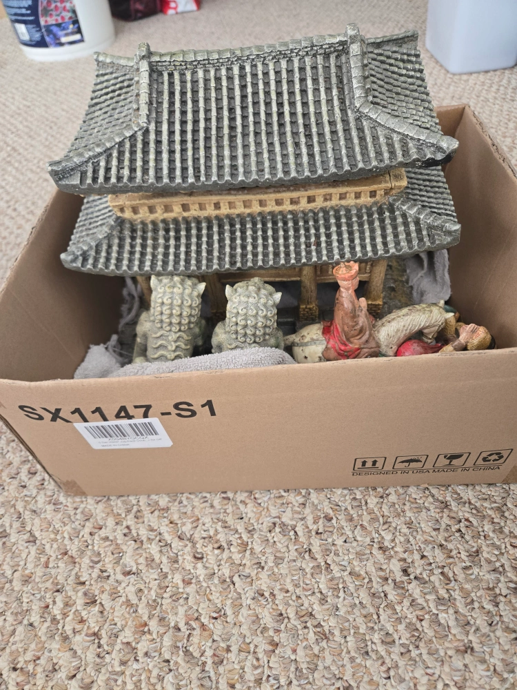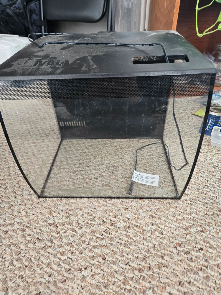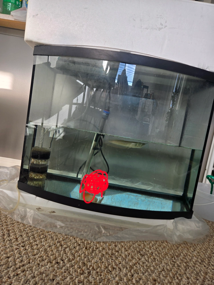 1036 gallon bow front tank, 9 gallon fluval flex 2.0, heaters, air pump, decorations, led desk light. all for $300