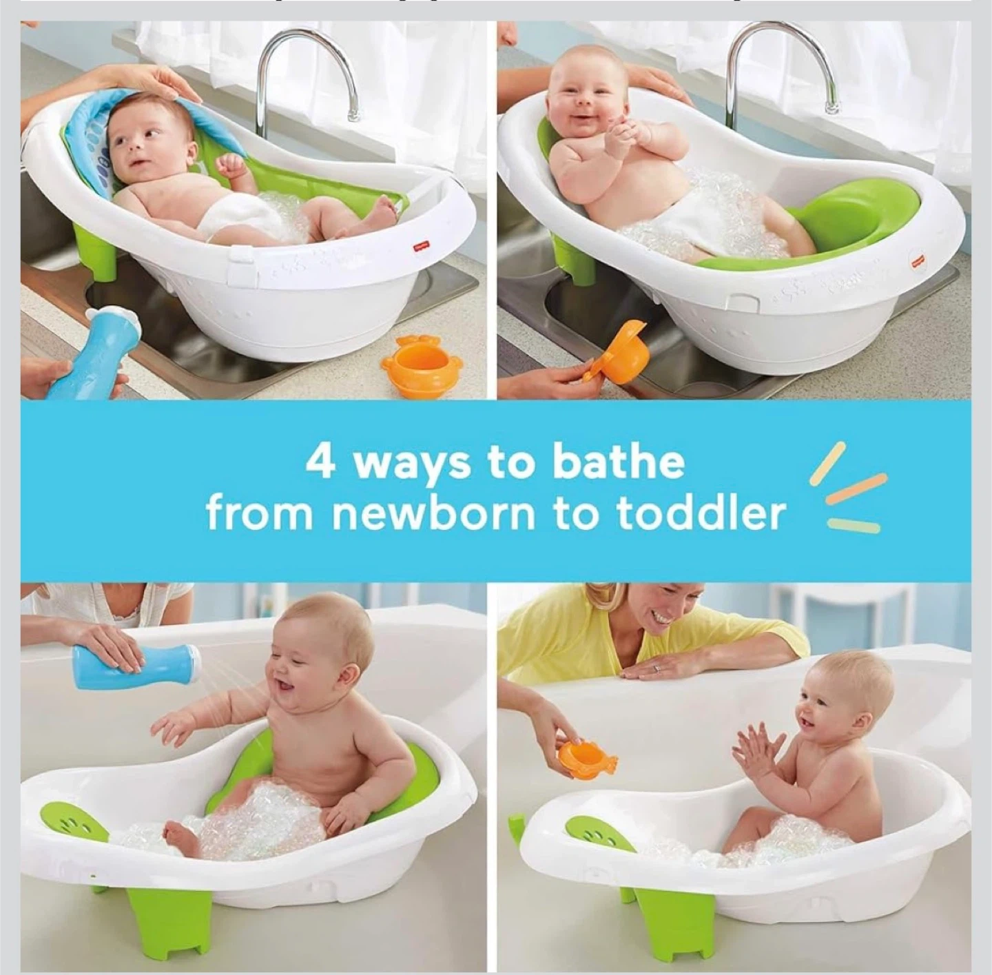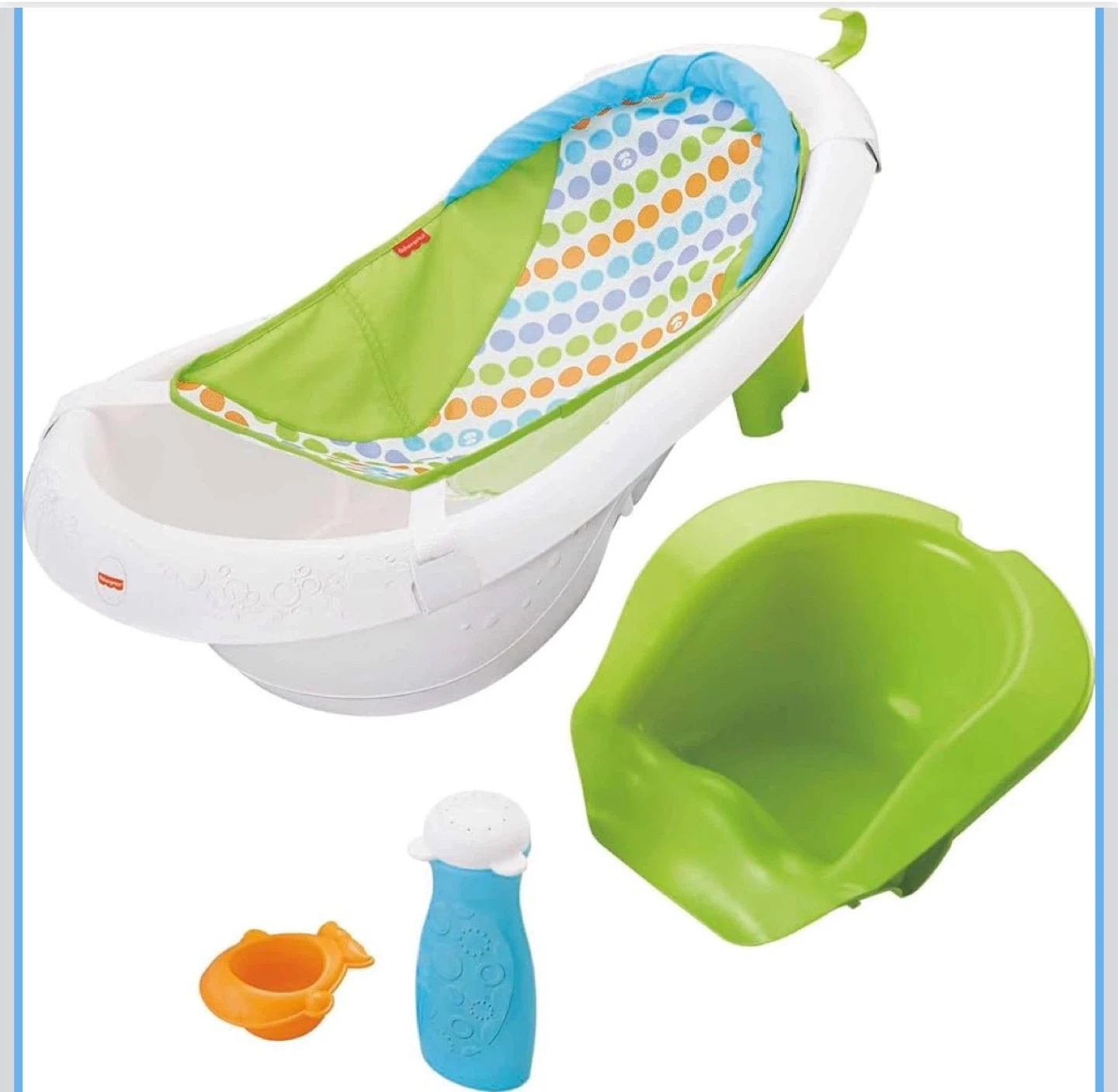 This Fisher-Price 4-in-1 Sling 'n Seat Tub grows with your baby from newborn to toddler! It features four stages of use: a soft mesh sling for newborns, a supportive seat for infants, a sit-me-up support for older babies, and a spacious tub for toddlers. It also comes with a squeeze and pour bottle and a scoop toy for bath time fun