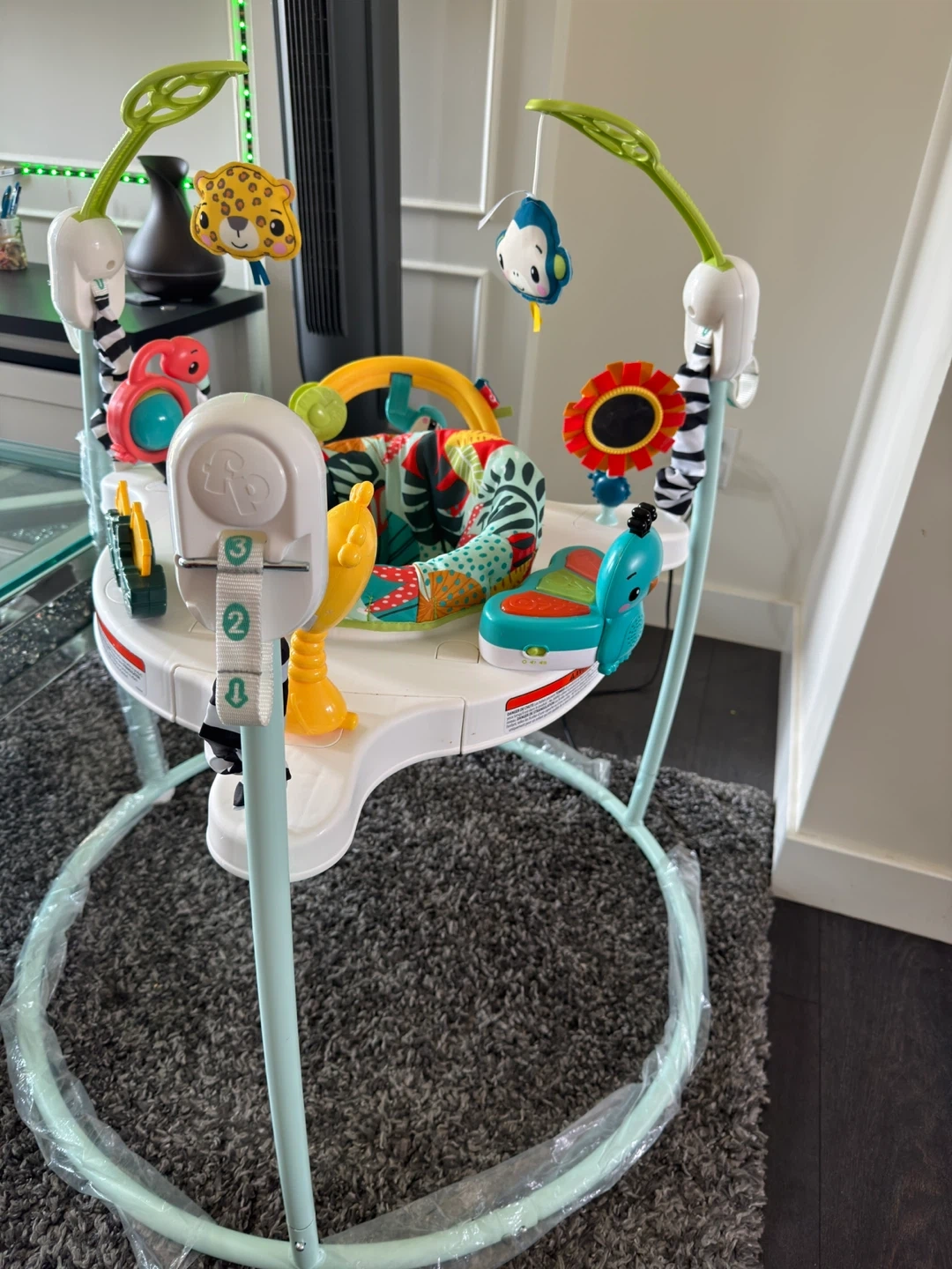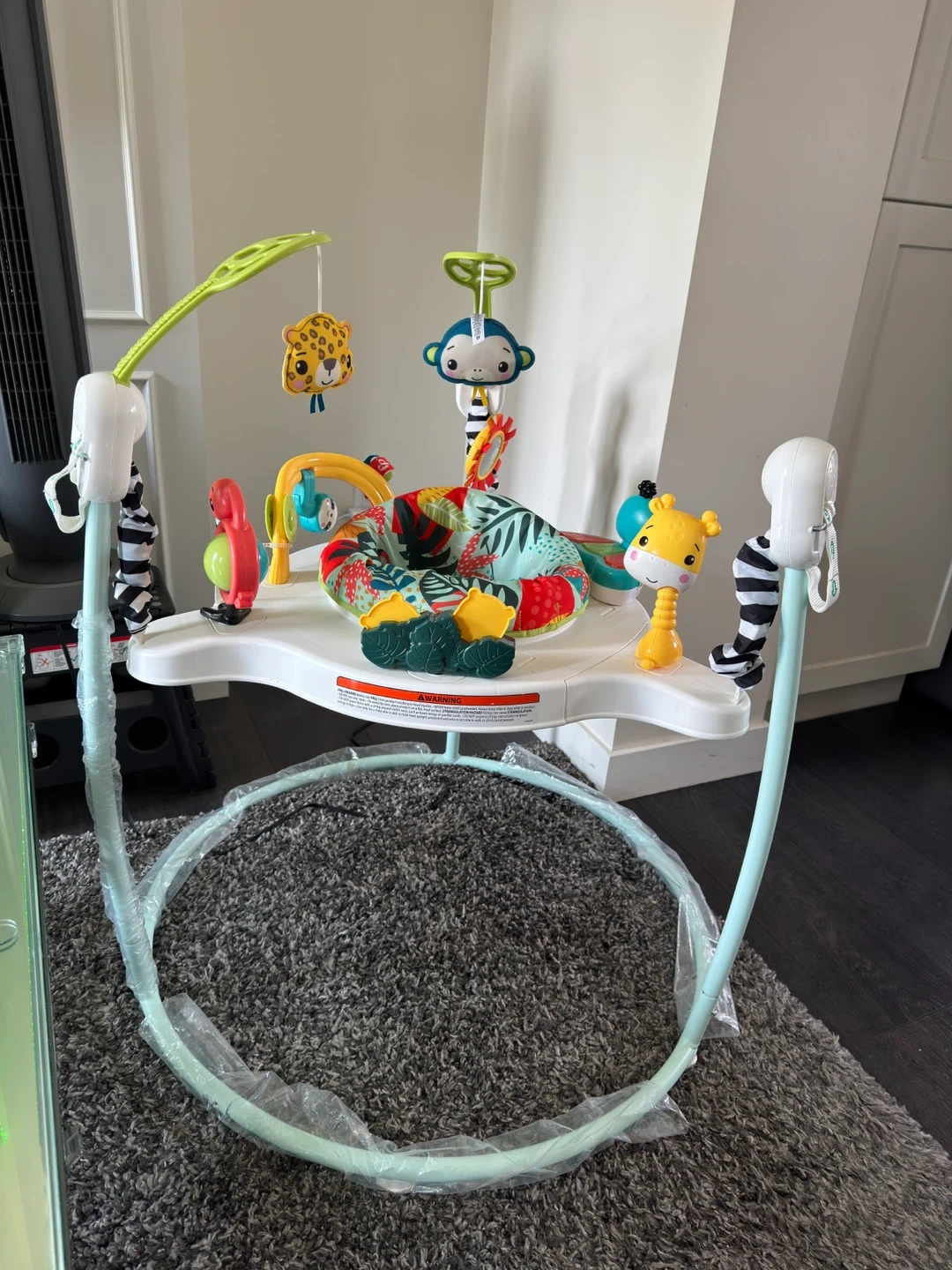 60Your little one will love bouncing and playing in this Fisher-Price Animal Wonders Jumperoo! It's in great condition and ready for a new home. The jumperoo features a variety of colourful toys and activities to keep your baby entertained and stimulated. It's designed to help develop motor skills and coordination while providing hours of fun.
