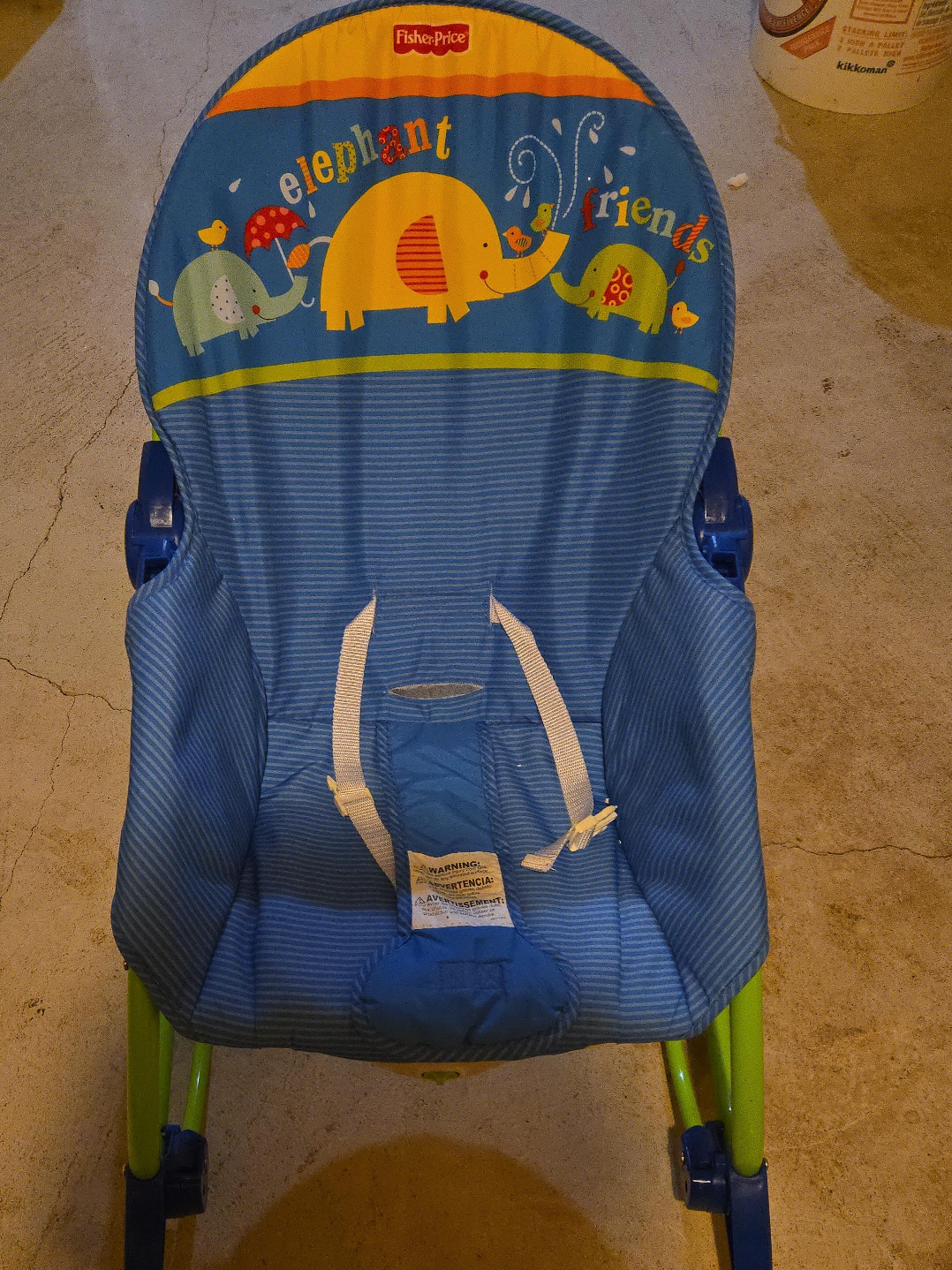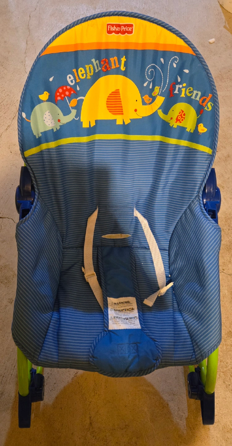 60Selling a gently used Fisher-Price baby seat / rocker with a cute elephant friends design! It's in great condition and perfect for keeping your little one entertained and comfortable. The bouncer is blue with colourful elephant and bird graphics. It's lightweight and easy to move around the house, so you can keep baby close by while you get things done.