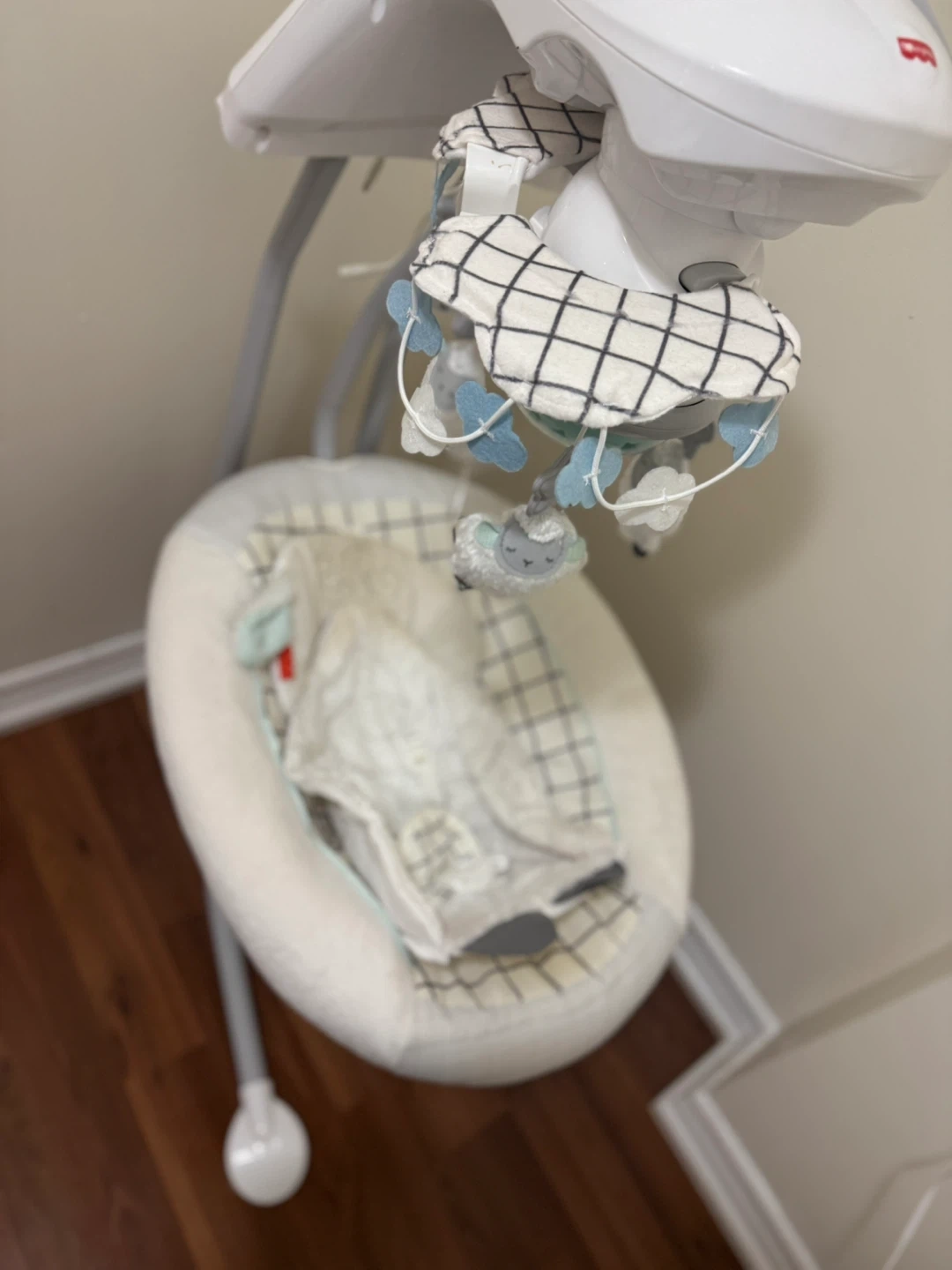 60Selling a gently used Fisher-Price baby swing. It's in great shape and ready for a new little one! Perfect for soothing and entertaining your baby with its gentle swinging motions and overhead mobile. The seat is soft and comfortable, ensuring your baby feels secure and cozy