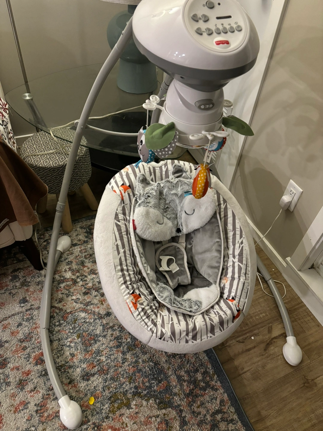 10A gently used Fisher-Price baby swing. It comes with the original manual and is in excellent condition. The swing is a great way to soothe your little one for sleep and is easy to assemble and disassemble. My baby loves it .. selling just because he grows up