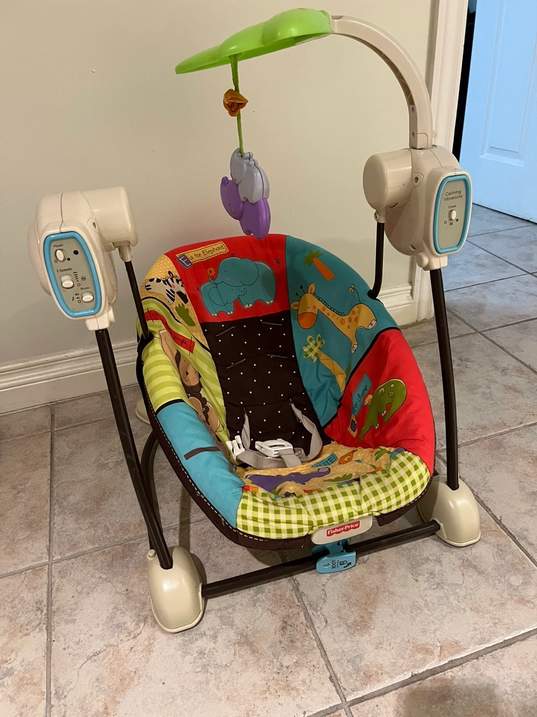 50Selling a gently used Fisher-Price baby swing! It's in great condition and features calming vibrations and multiple speeds to soothe your little one. The seat pad is colourful and features adorable animal designs. Perfect for keeping your baby comfortable and entertained!