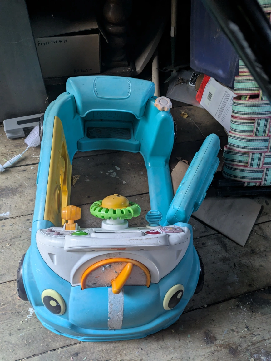 15Here's a Fisher-Price baby walker in good used condition! It's perfect for helping your little one take their first steps. It has some wear and tear but is still fully functional and ready for a new home