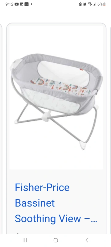 Light grey coloured bassinet. Features white mesh detailing. Includes a rainbow pattern. It is perfect for your newborn to gently rest. use onces, pick up Woodbine sw