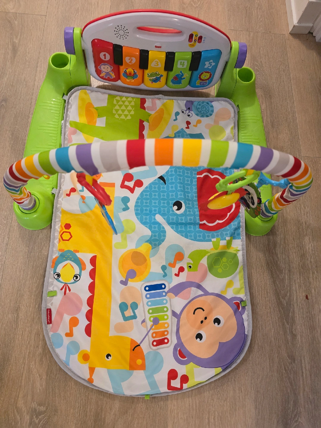 Selling a gently used Fisher-Price Deluxe Kick & Play Piano Gym! It features a colourful mat with engaging patterns and a piano that plays music when baby kicks or touches it. Comes with hanging toys to encourage reaching and grasping. Suitable for newborns and up, it's a great way to encourage development and sensory exploration for your little one