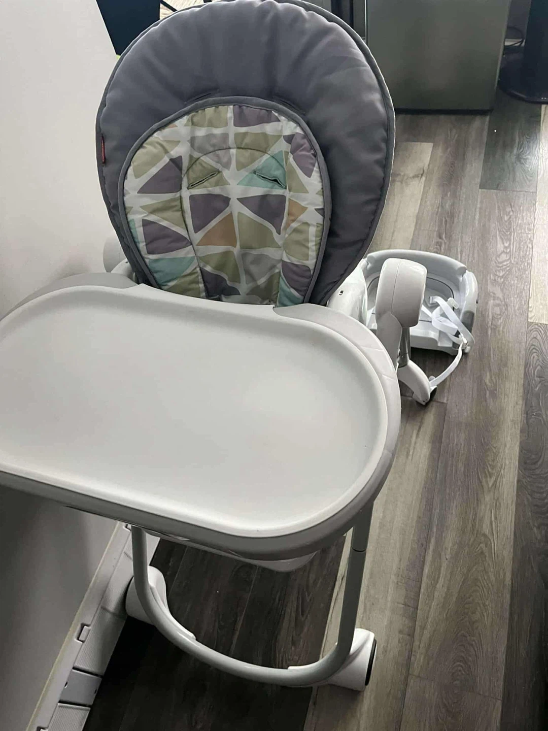 Selling a Fisher-Price high chair in great condition! It's perfect for feeding time and keeping your little one comfortable. The chair is easy to clean and features a removable tray for convenience. It's got a nice, neutral grey colour that will fit in with any decor