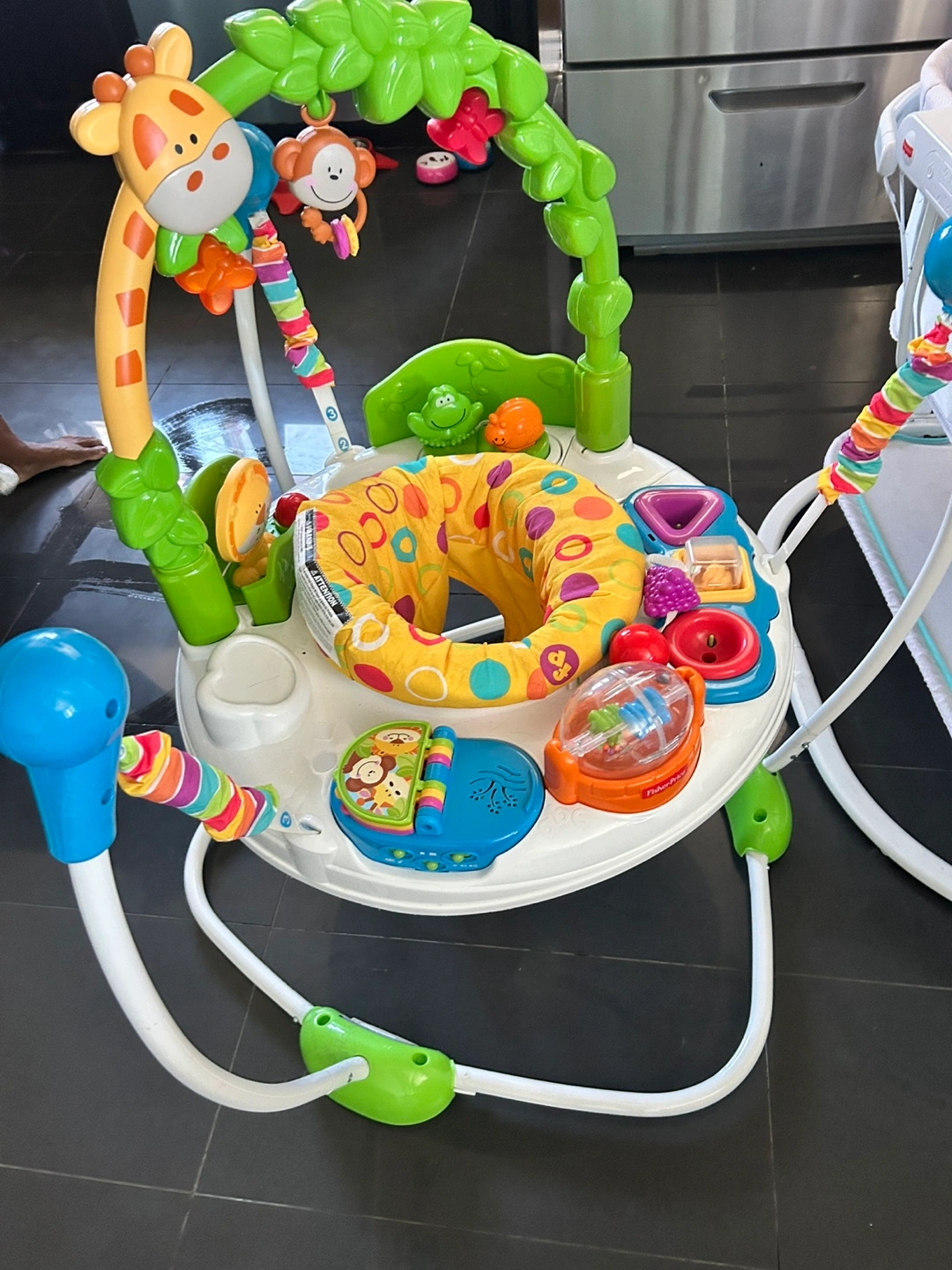 34Selling a Fisher-Price Jumperoo! It's in great shape and ready for a new little one to enjoy. This jumperoo features a variety of toys and activities to keep your baby entertained and help develop their motor skills. It's a fun and engaging way for babies to bounce and play!