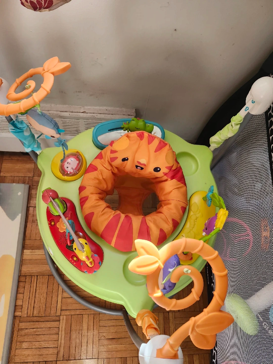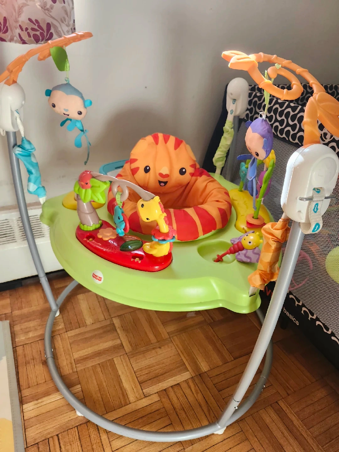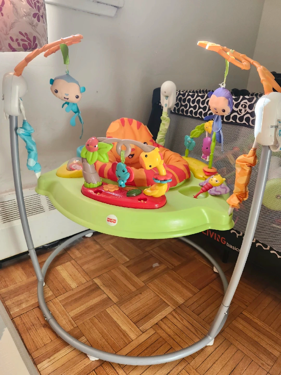 10Selling a Fisher-Price Jumperoo! It's in great condition and ready for a new little one to enjoy. This jumperoo provides a safe and fun way for babies to bounce and play, with lots of colourful toys and activities to keep them entertained. All lights and music work.