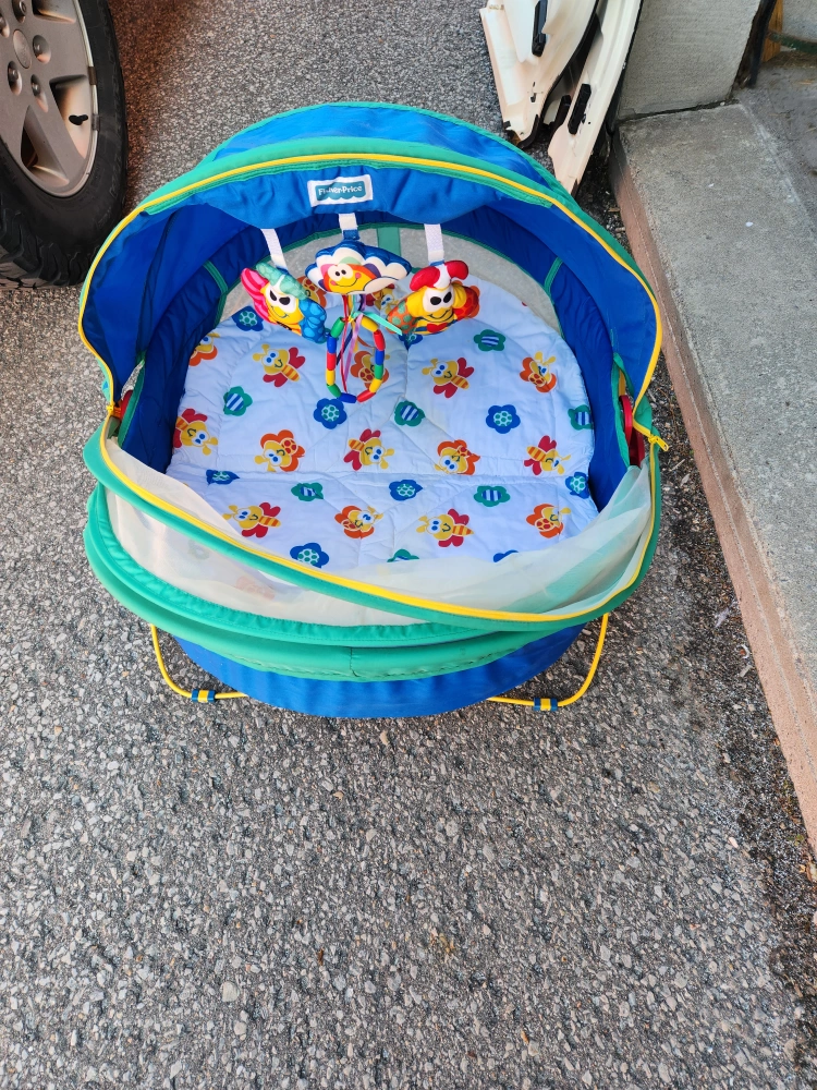 15This Fisher-Price Newborn Travel Dome is perfect for your little one! It's great for travel or just keeping baby comfy at home. The dome features a cozy sleeping area with a mesh cover to keep bugs away, and it folds up easily for storage and transport. I used it for the beach.