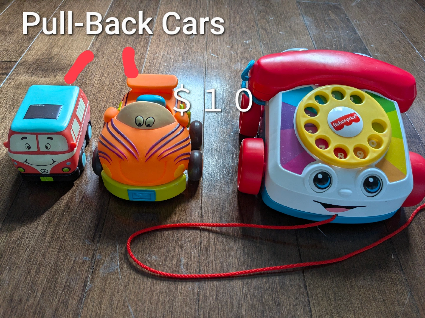 35Selling a bundle of Fisher-Price toys! Includes a colourful pull-back car set and a classic pull-along telephone toy. Perfect for toddlers!