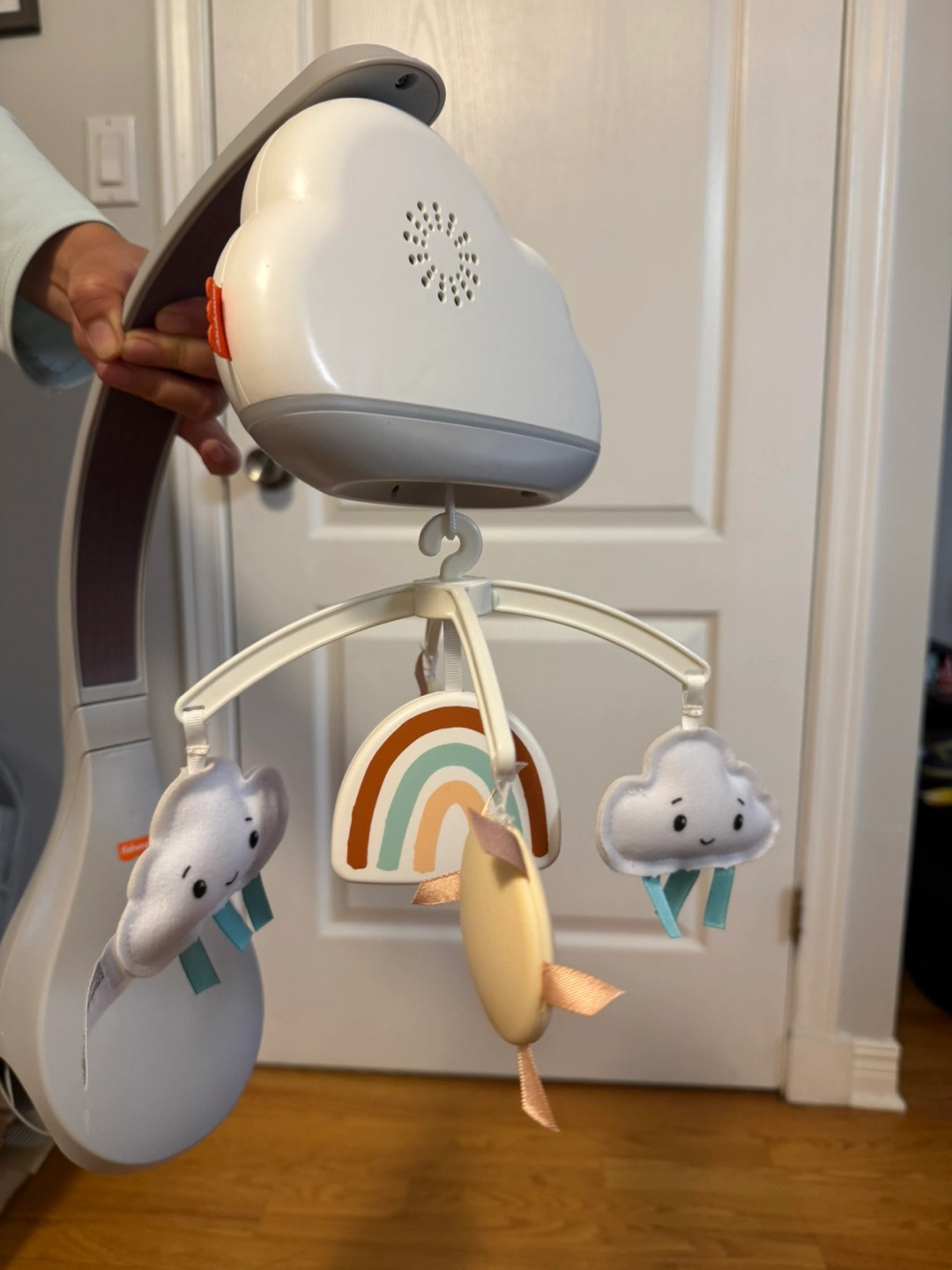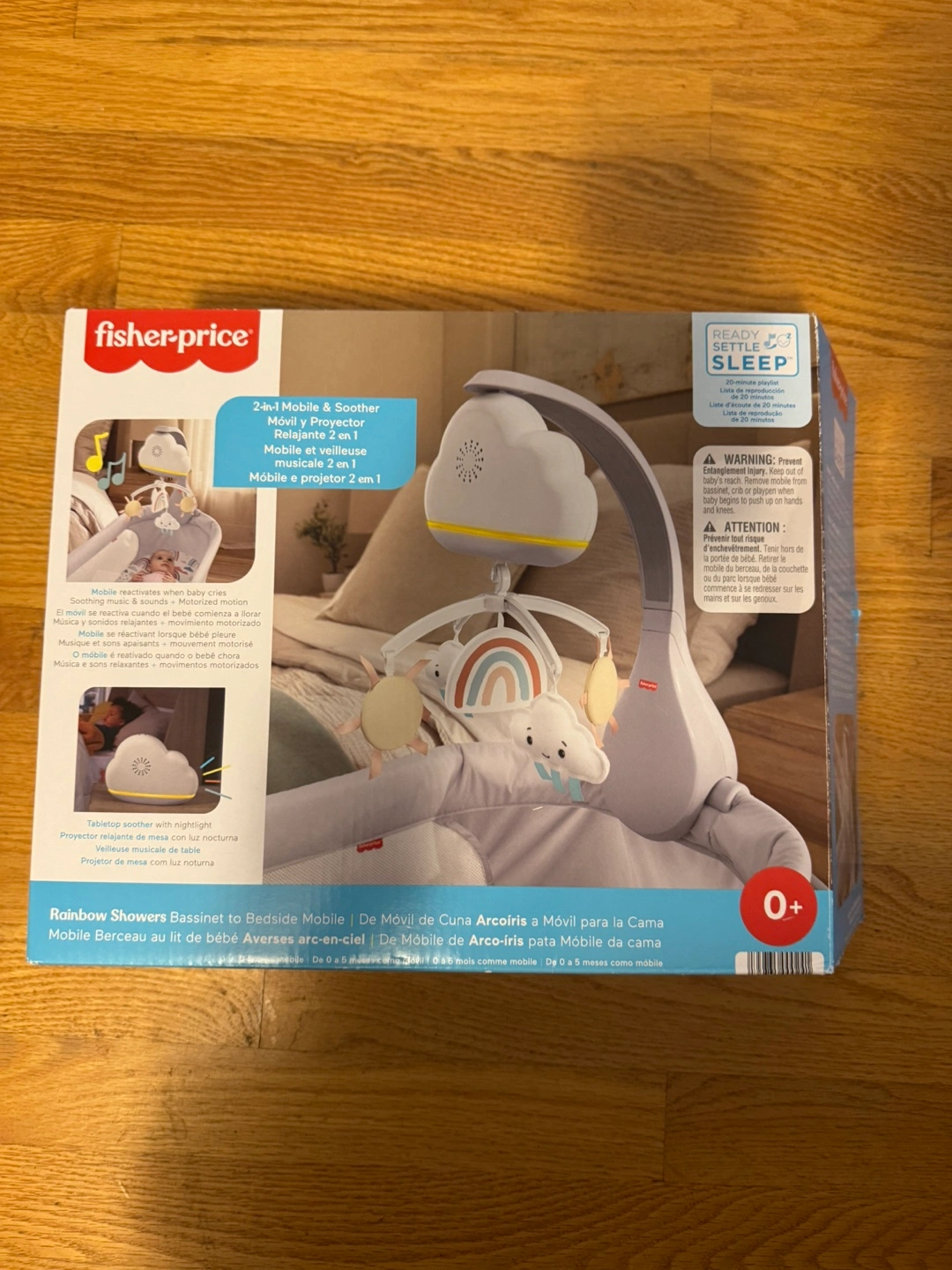 This Fisher-Price 2-in-1 Mobile & Soother is perfect for helping your little one drift off to sleep! It's a mobile and projector in one, with music and sounds to soothe baby. The Rainbow Showers Bassinet to Bedside Mobile can be easily attached to a bassinet or bedside. Recommended for ages 0+.