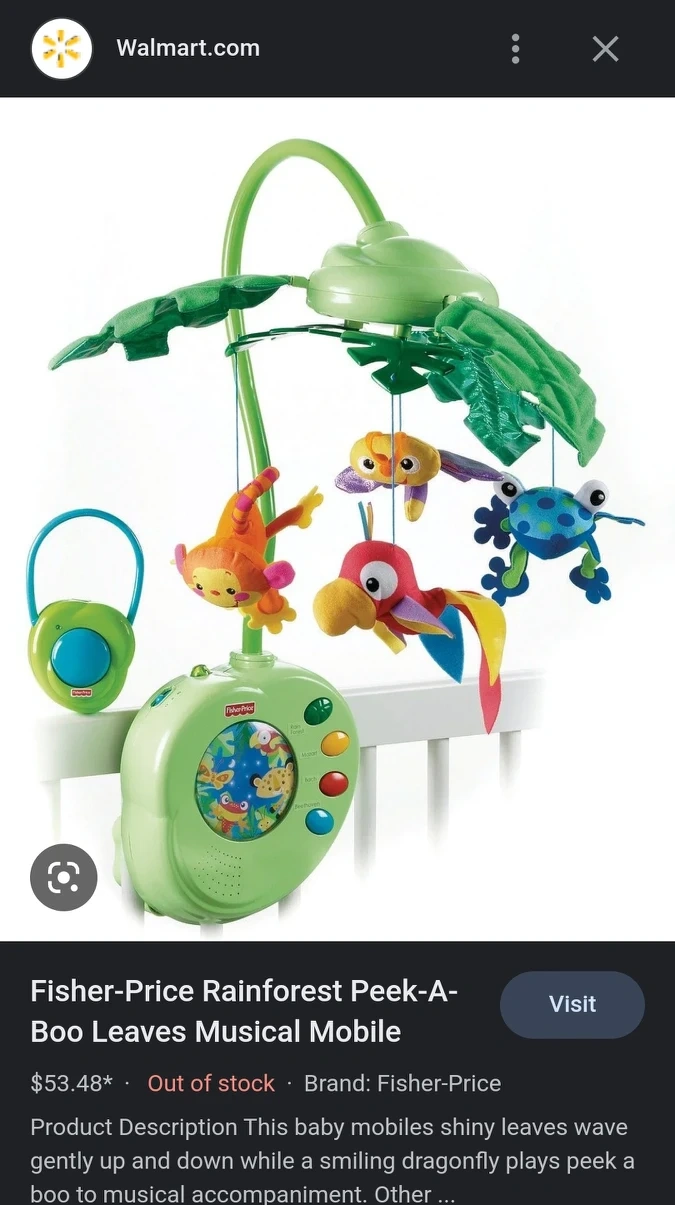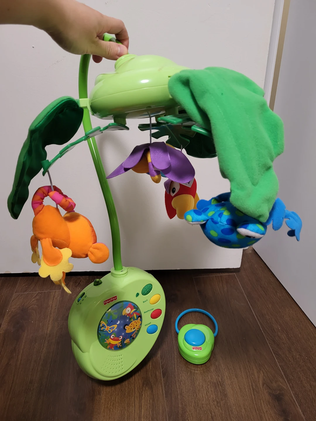 505Fisher-Price Rainforest Baby Mobile Battery operated Sounds work, but the mobile doesn't turn. Not sure if it's broken or if it needs new batteries. I don't really remember how to operate it. Other than that, the mobile is in great condition. Pick up in North York near Yonge/Finch