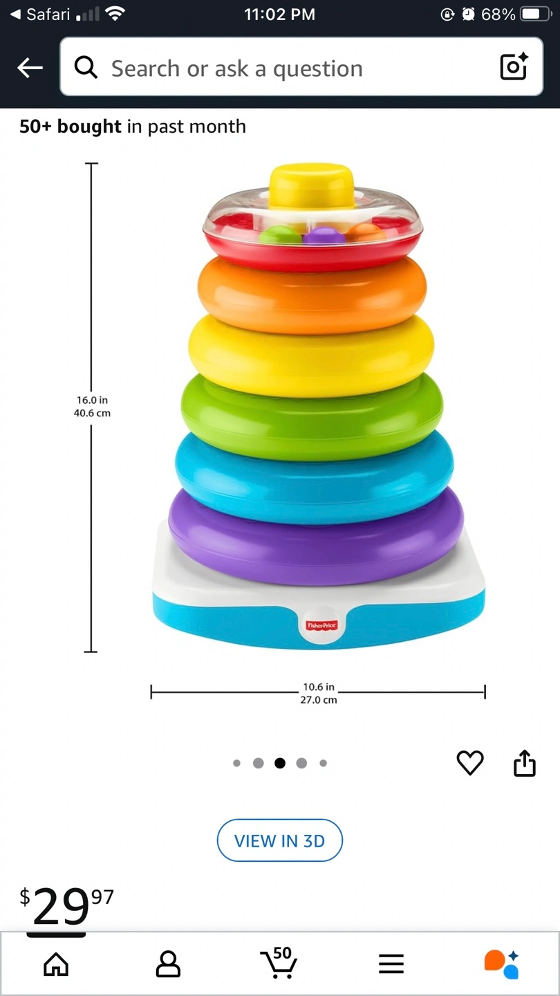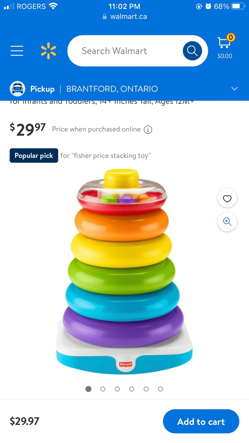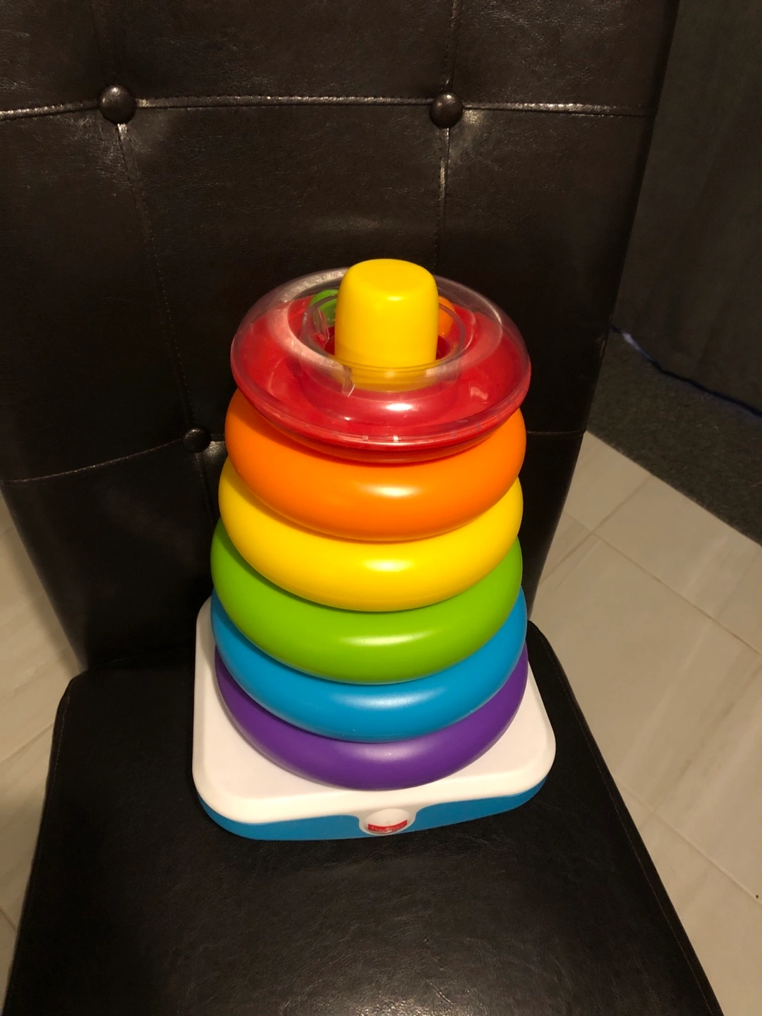 I'm selling a Fisher-Price Rock-a-Stack Stacking Toy! It's in great condition and ready for a new home. This classic toy is perfect for infants and toddlers, helping them develop their fine motor skills and hand-eye coordination. It is 16 inches tall. Originally bought for $29.97!
