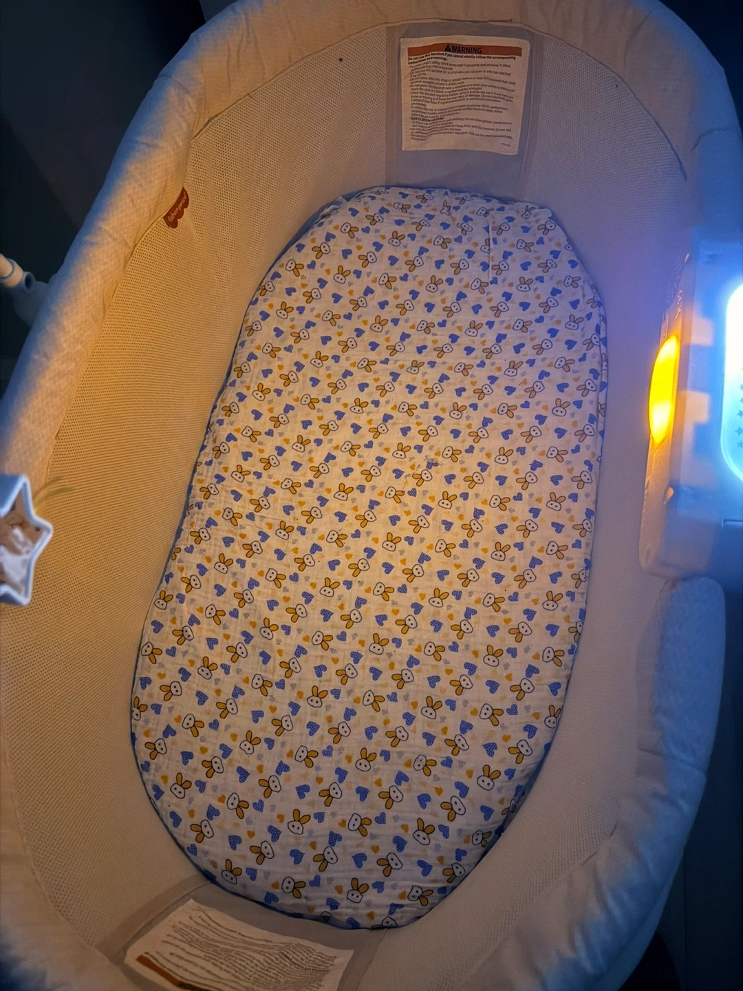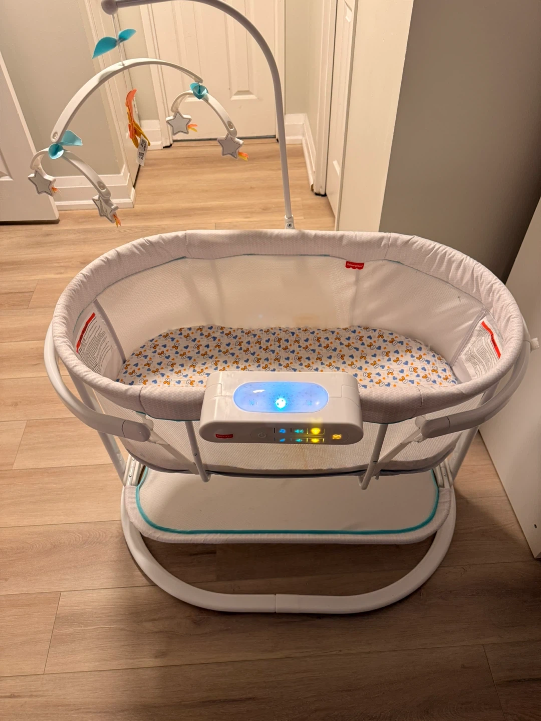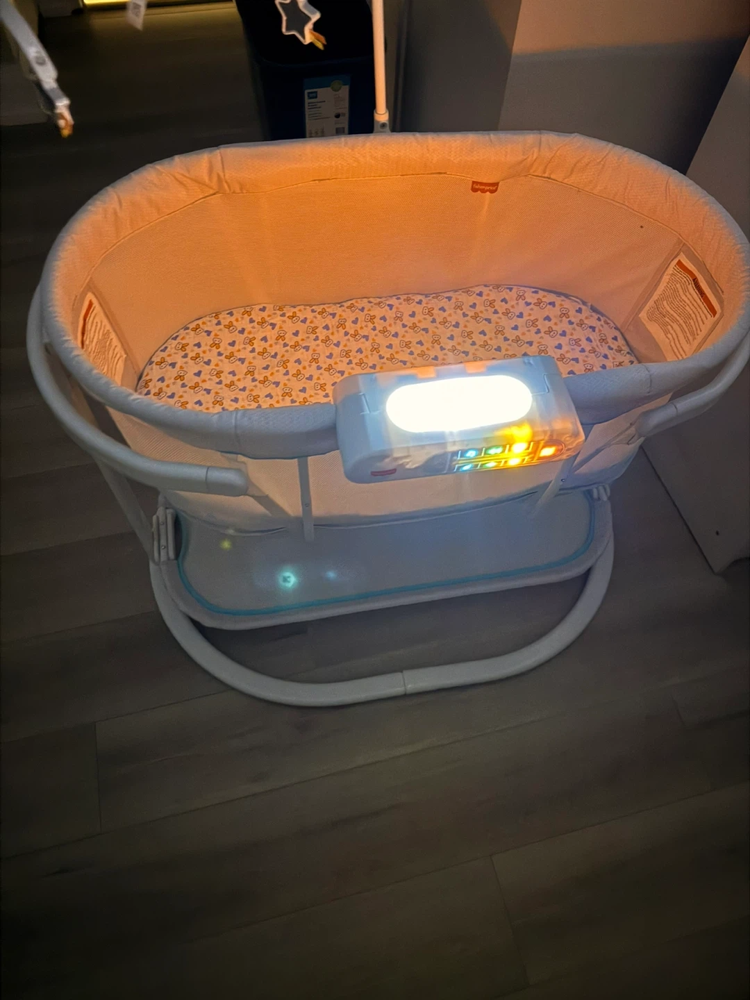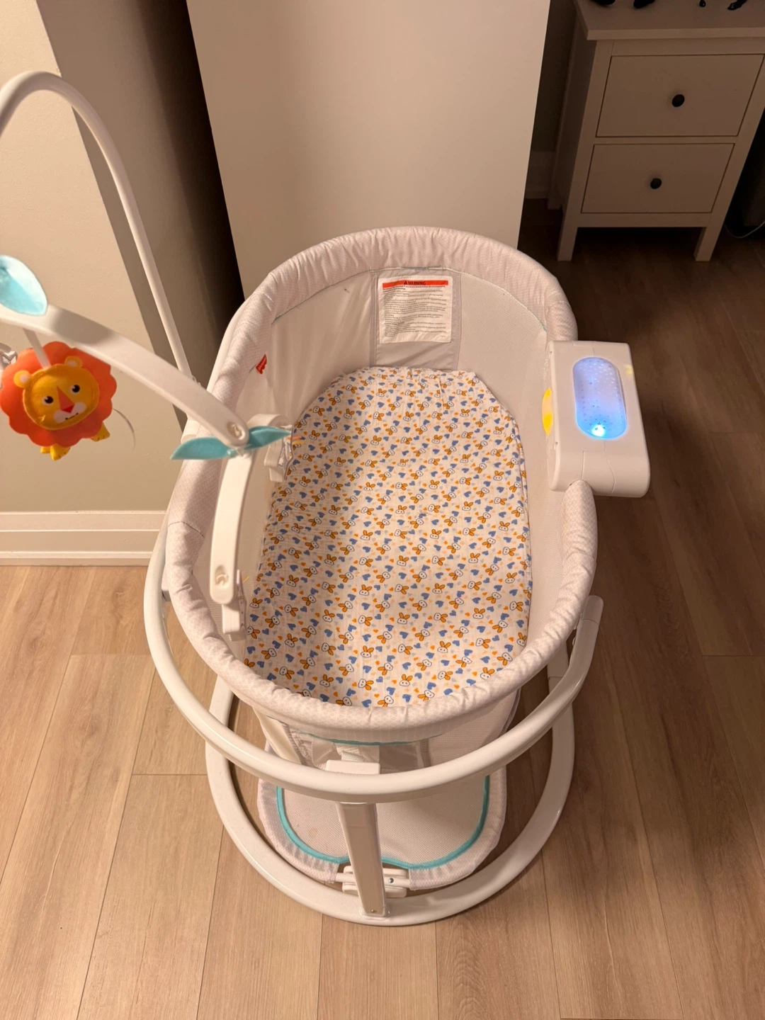 60Selling a Fisher-Price Soothing Motions Bassinet! It's in great condition and ready for a new little one. This bassinet features gentle swaying motions, calming vibrations, and soothing sounds to help your baby drift off to sleep. The overhead mobile with toys adds a touch of visual stimulation too. Cushions and battery included.