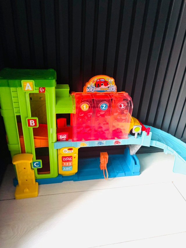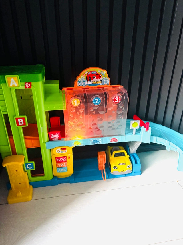 Fisher-price light-up garage, Perfect for little car lovers ready to race cars down a ramp. This interactive toy brings tons of fun with bright lights, cheerful sounds, and moving parts that keep toddlers engaged for hours. Payments will be done upon pickup Condition: Used - Like new