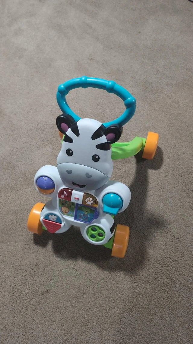 This gently used Fisher-Price Zebra Walker is perfect for helping your little one take their first steps, featuring engaging lights, sounds, and hands-on activities to keep them entertained, while also developing gross motor skills. Additional features include: * Sturdy four-wheel base for balance and support * Easy-to-grip handle * Variety of sensory activities, including buttons, spinners, and flip pages * Introduces ABCs, 123s, and animal names This walker is in good condition and ready for a new home. It's been cleaned and sanitized, ensuring it's safe for your child. I'm asking $20.